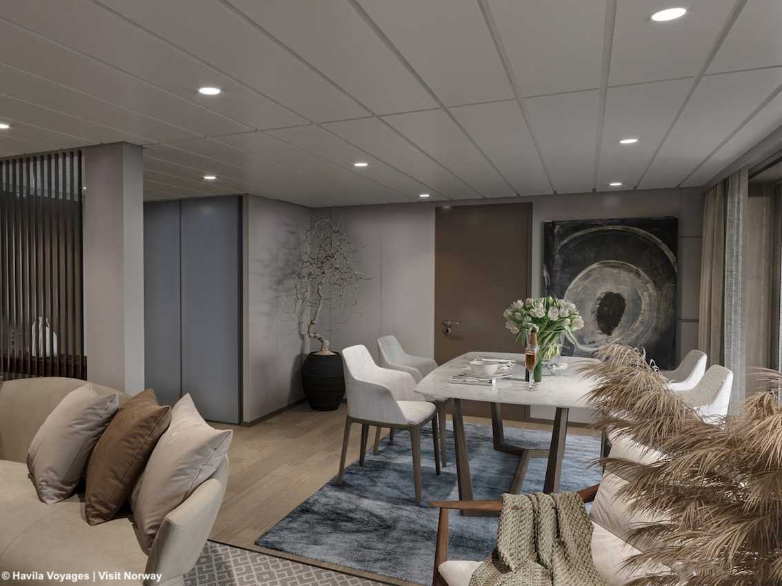 E poi ci sono le navi di Havila Voyages, come la nuovissima Havila Capella: lo scafo è appositamente progettato per la massima efficienza energetica e il calore in eccesso dall'acqua di raffreddamento viene utilizzato per il riscaldamento a bordo; nel menu vengono proposti piatti di produzione locale evitando la plastica non necessaria. “Stiamo già superando i requisiti delle autorità per la riduzione delle emissioni e siamo partiti con l'obiettivo zero emissioni” spiega il ceo della compagnia Bent Martini. Ma l'avvio è quello frenetico di un grande hotel: “Havila Capella è un grande hotel con 179 cabine, diversi ristoranti e ampi spazi comuni per consentire una fruizione spettacolare del viaggio. Il programma prevede che il primo tour di andata e ritorno Bergen-Kirkenes salperà mercoledì 1° dicembre. Il cibo e gli interni della nave riflettono la costa che attraversano, le cabine sono grandi, le aree comuni sono pensate per godersi la vista, come ad esempio i tetti di vetro per ammirare l'aurora boreale e il sole di mezzanotte, e un lungo percorso all'aperto perfetto per una passeggiata in mare.