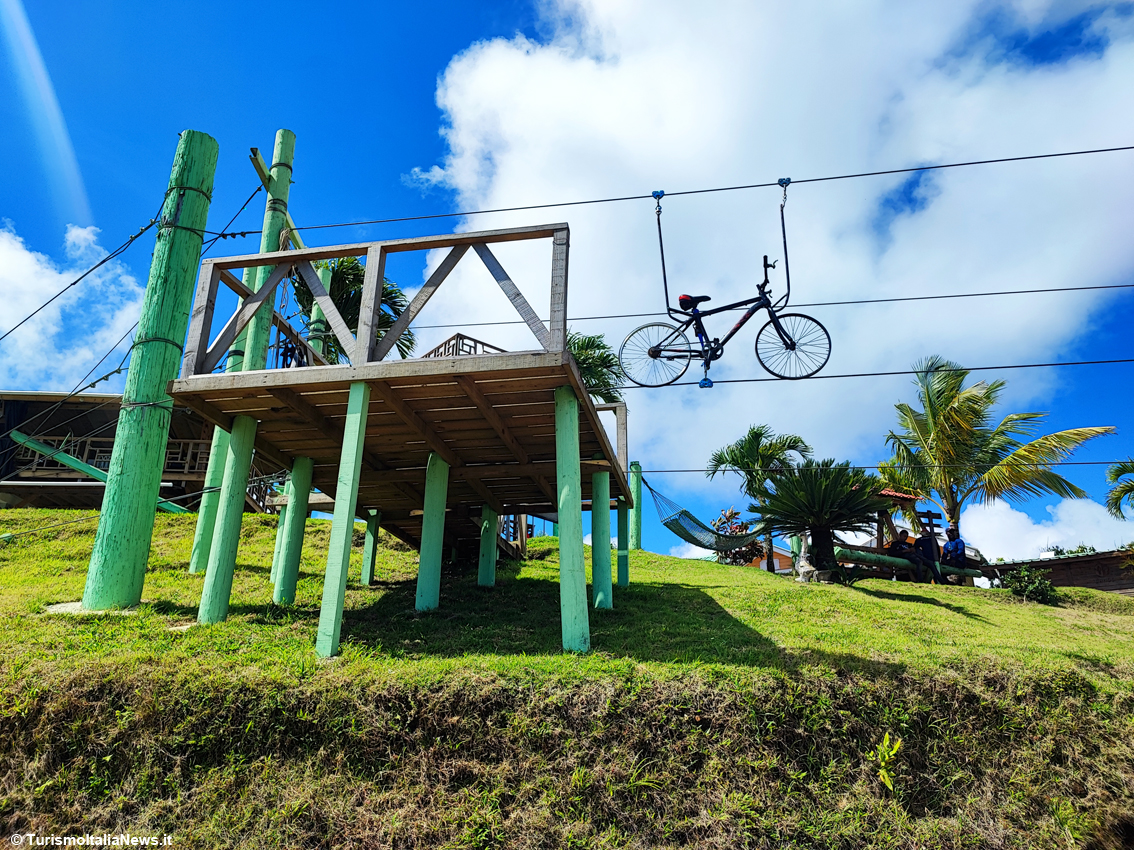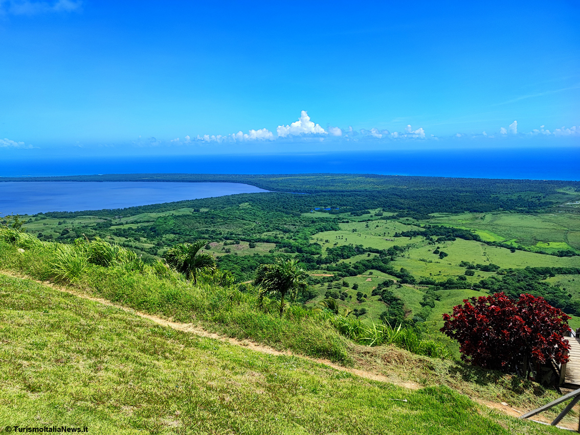 (TurismoItaliaNews) Ci si arriva con una tipica camionetta dominicana che affrontano curve e pendii ripidi come se seguissero un rituale millenario. Il viaggio stesso è parte dell’esperienza: tra piantagioni di cacao, palme ondeggianti e volti sorridenti di bambini che salutano al passaggio, si percepisce già quella connessione autentica con la natura e la gente del luogo. Ma è solo quando si arriva in cima che la magia si svela pienamente.