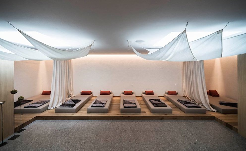 Attenzione alle famiglie anche nella zona saune: a disposizione degli adulti, in una vasta superficie su tre piani, il benessere del bagno turco, della sauna al pino cembro e della sauna finlandese. Mentre i bambini, insieme a mamma e papà, possono accedere alla Family Sauna del Feuerstein, appositamente studiata per vivere un’intensa vicinanza pelle a pelle con i propri piccoli nella benefica interazione del calore, del vapore e del discreto aroma del legno: non solo un’esperienza rilassante, ma un trattamento purificante utilissimo per rinforzare le difese immunitarie e favorire il decongestionamento delle vie respiratorie. E se poi i genitori vogliono concedersi qualche momento di intimità spirituale, mentre i figli sono assistiti e seguiti da personale qualificato, anche in tutta una serie di esperienze creative e di socializzazione a disposizione c’è lo splendido Yoga Loft panoramico, che si compenetra, grazie a un’ampia vetrata, nella pace dello scenario alpino circostante. Qui, grazie ai tranquilli esercizi fisici e respiratori propri dell’Hatha Yoga e lontano dalle interferenze del mondo esterno, si libera nuovamente l’energia vitale, recuperando una sensazione di armonia e di equilibrio a 360°.