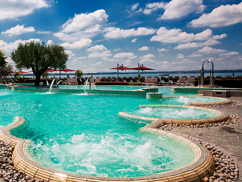 Aquaria Thermal Spa è un luogo unico, affacciato direttamente sul lago e immerso in un grande parco, in cui vivere intensi momenti di piacere tutto l’anno, di giorno o di sera, alternando alle esperienze sensoriali dell’acqua termale, del vapore e del calore, le coccole dei trattamenti. La Thermal Spa offre oltre 10.000 mq di benessere termale, grazie ad un’acqua naturale e pura, sulfurea salsobromoiodica. Piscine termali, lettini effervescenti, idromassaggi, saune interne ed esterne, bagni di vapore, docce emozionali e aree relax polisensoriali. Uno scenario unico in riva al lago con l’incanto dei suoi incredibili tramonti.