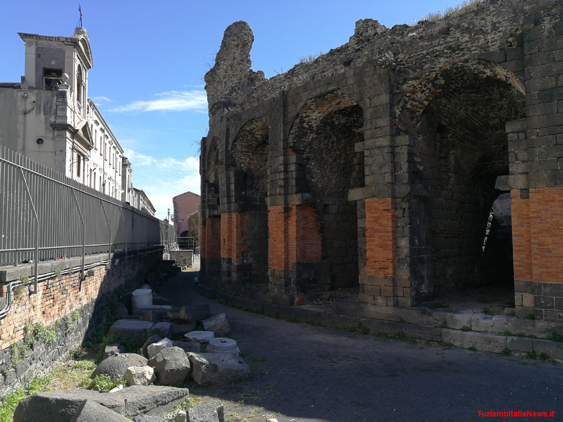 (TurismoItaliaNews) Lo vedi e te ne innamori subito. Del resto Catania è tutta una sorpresa: bellissima e contradditoria, fastosa e accogliente, soprattutto antica. Antica nelle sue origini, nelle sue tradizioni, nei tesori che conserva nei cortili, dietro alla facciata di un palazzo, lungo il reticolo ortogonali di strade sulle quali si affacciano architetture preziose ed elaborate. E il teatro greco-romano è uno di questi patrimoni, che non puoi comprendere in tutta la sua essenza se non dopo aver varcato il portone che si apre su via Vittorio Emanuele II, che nulla lascia presagire sulla grandezza dell’opera del passato. Entrando nel primo cortile coperto l’emiciclo inizia a delinearsi in tutta la sua imponenza, lasciando il visitatore senza fiato: la porzione di centro storico in cui è tornato alla luce insieme all’odeon (sulla sua sinistra, guardando dalla cavea) ed oggi è delimitato da piazza San Francesco e dalle vie Tineo, Sant’Agostino e del Teatro Greco, dalla quale si gode la vista delle strutture dal retro. Sorprendente, raffinato, evocativo di un’epoca che non è affatto andata perduta.