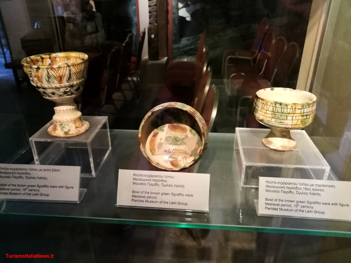 “Gli archeologi hanno riportato alla luce nella nostra zona parti di pitharia, grandi vasi di ceramica dalla forma caratteristica, risalenti al 3.500 avanti Cristo - ci spiega Francis Guy, proprietario del museo – sul cui fondo sono stati rinvenuti depositi sottoposti ad analisi che hanno dimostrato la presenza di una grande quantità di acido tartarico, il caratteristico acido del vino. Queste osservazioni suggeriscono che i vasi di Erimi erano stati realizzati appositamente per conservare il vino”.
