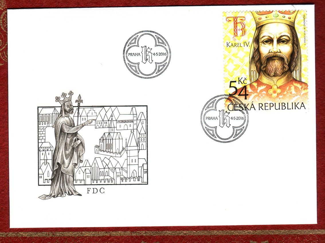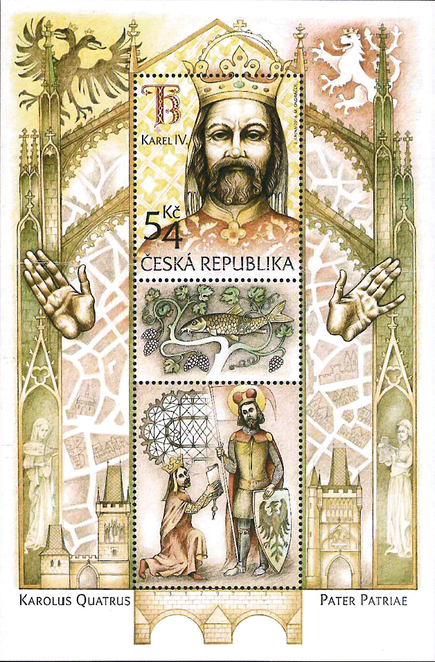 E dunque a 700 anni di distanza, il suo Paese continua a celebrarlo con immutato orgoglio ogni anno. “ Quello del 2016 è però un anniversario di tutto rispetto – ci spiegano da Praga - 700 anni dalla nascita di un sovrano giusto, lungimirante, illuminato, cosmopolita e rispettato da tutti”. Tanto che lo Stato mette in circolazione pure uno splendido francobollo da 54 corone stampato in foglietto e in distribuzione dal 4 maggio: l'autore del disegno è il pittore accademico e grafico Jan Kavan, le incisioni del foglietto e della “busta primo giorno” sono dell'artista grafico e incisore Milos Ondráček.