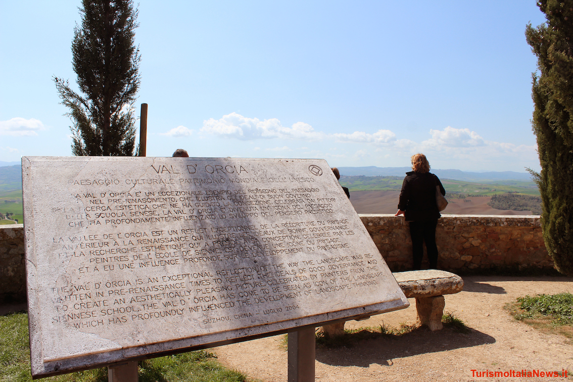 (TurismoItaliaNews) Affacciandosi da una delle terrazze di Pienza - la Città d’Autore, la Città Ideale, la Città Utopia, sorta in appena tre anni fra il 1459 e il 1462, “nata da un pensiero d’amore e da un sogno di bellezza” come ha scritto Giovanni Pascoli – la Val d’Orcia si presenta in tutto il suo splendore, mutevole nei colori a seconda delle stagioni e cangiante a seconda della posizione del sole che sembra volerla baciare. Non si smetterebbe mai di guardarla, se non fosse per la voglia di immergervisi andando a correre su quelle strade bianche che con delicatezza vi serpeggiano. È un paesaggio nudo, perfetto, essenziale, dove il profilo di castelli, torri e rocche medievali, villaggi e fortificazioni è interrotto solo dai cipressi che ne fiancheggiano le strade o dagli inaccessibili calanchi e biancane di creta, che si sono salvati dal levigamento dell’uomo. Dal 2004 l’Unesco l’ha riconosciuta patrimonio mondiale dell'Umanità, mentre Pienza è stata inserita nella lista nel 1996.