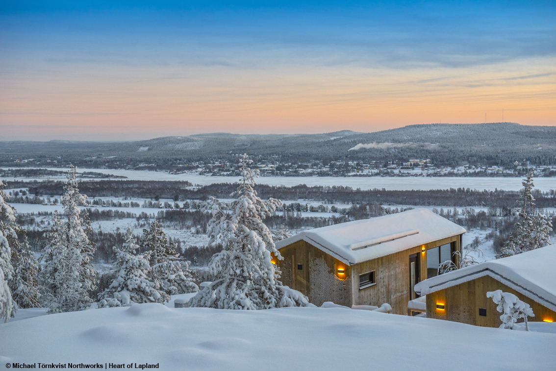 Per coloro che vogliono soggiornare nella natura ma comunque vicino a un ambiente urbano, Ice & Light Village è una sistemazione memorabile. Cinque nuovi e moderni cottage racchiusi in un guscio a forma di igloo, decorati con arredi scandinavi e grandi finestre, si trovano direttamente in riva al fiume appena fuori dalla cittadina di Kalix. La signora Maarit Lindvall riceve i suoi ospiti con entusiasmo e invita a varie attività invernali tra cui un pranzo tradizionale nel mezzo della foresta attorno a un fuoco insieme alla produttrice locale di cioccolato Åsa Andersson-Ulvede. Quando cala l'oscurità, è il momento di rilassarsi nel proprio igloo e sperare che l'aurora boreale illumini il cielo davanti ai propri occhi.