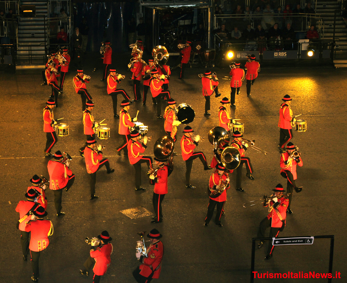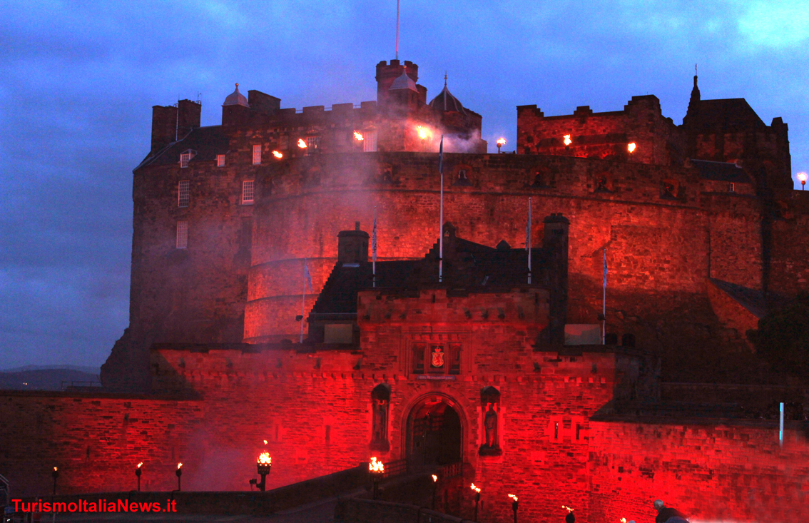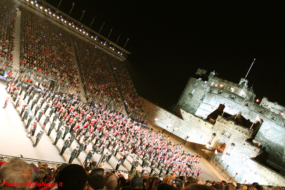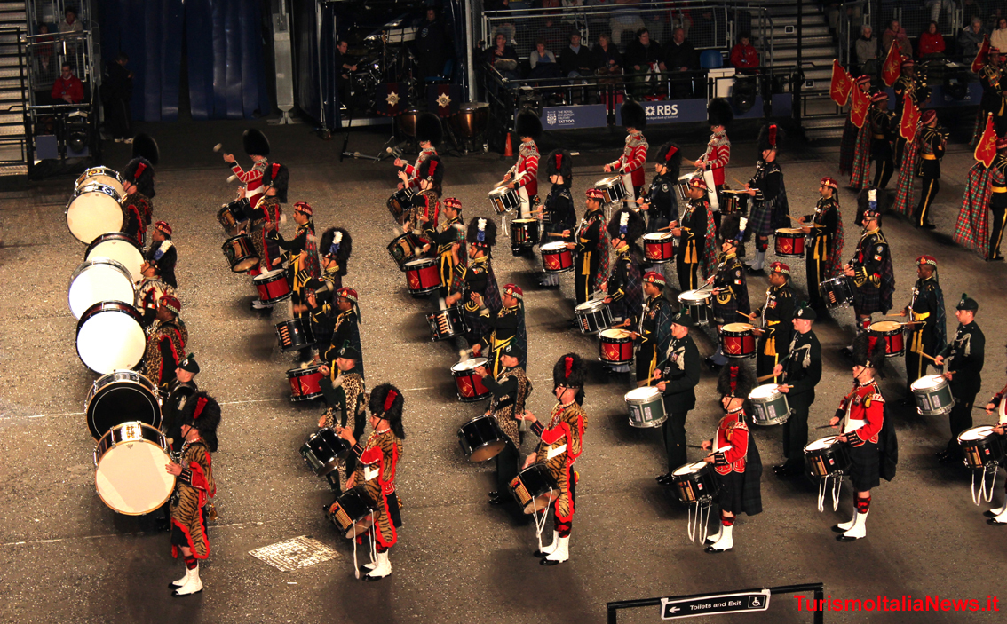 (TurismoItaliaNews) Quando si è in coda lungo la dolce salita che conduce alla Spianata del Castello di Edimburgo, in mezzo a migliaia di persone che con pazienza e rispetto del luogo storico attendono di raggiungere il posto loro assegnato, è palpabile la smania di assistere all'evento. In circa 45 minuti la coda si esaurisce e tutti sono seduti: lo spettacolo inizia alle 21 in punto per concludersi circa due ore dopo, non prima che i fuochi pirotecnici abbiano consacrato con le loro scintille la straordinaria serata. Il Military Tattoo si ripete da ben 64 anni e ogni volta è diverso, grazie anche alle bande e agli artisti che arrivano appositamente. L'edizione 2013, ad esempio, ha visto la partecipazione di Corea, Messico, Nuova Zelanda e Mongolia, ciascuno con le proprie formazioni militari, suoni, ritmi, divise e balli. Ma certo a fare la parte del leone sono le cornamuse scozzesi come quelle del Royal Regiment of Scotland.