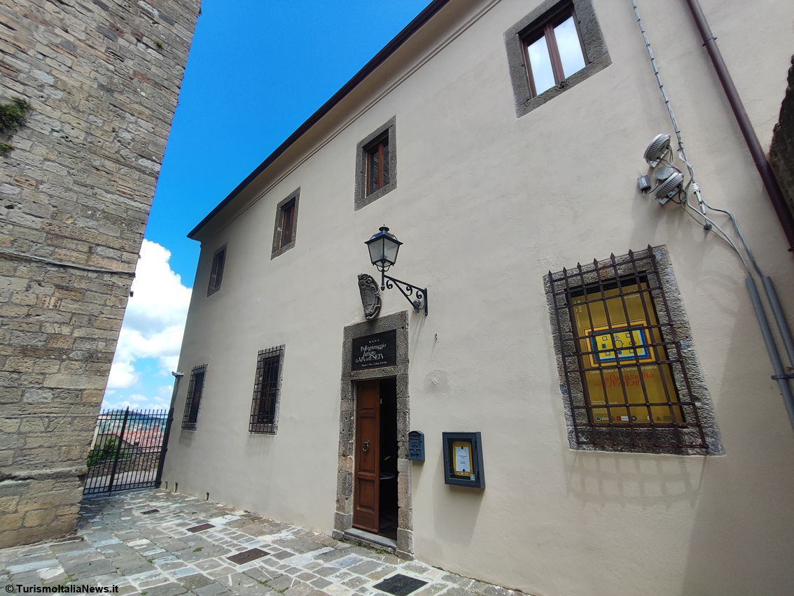Una fortezza che oggi, a ben guardare, conserva le sue peculiarità: non a caso al secondo piano c’è la galleria dedicata al paesaggio medievale dell’Amiata e della Maremma, in cui sono esposti reperti archeologici provenienti dal sito di Castel Vaiolo, che includono il più importante nucleo di castagne antiche recuperate in scavo in Toscana. Altre sezioni illustrano architettura e urbanistica dei centri storici medievali amiatini e della Valle del Fiora e la formazione della contea Aldobrandesca. Le sale medievali ospitano il Museo di David Lazzaretti, che ripercorre la vicenda umana e religiosa dell’uomo vissuto tra il 1834 e il 1878), il “profeta dell’Amiata” e del suo movimento, tramite pannelli, oggetti e documenti. Al primo piano, percorrendo il ballatoio troviamo la collezione Emo Mecheroni, una raccolta di armi antiche, dal Medioevo al ‘900, con circa 175 pezzi appartenenti a varie epoche e a varie culture ed elmi di diversa foggia e provenienza. Insomma un percorso che è un racconto da vivere, diventando il luogo di una narrazione storico-archeologica sul Medioevo.