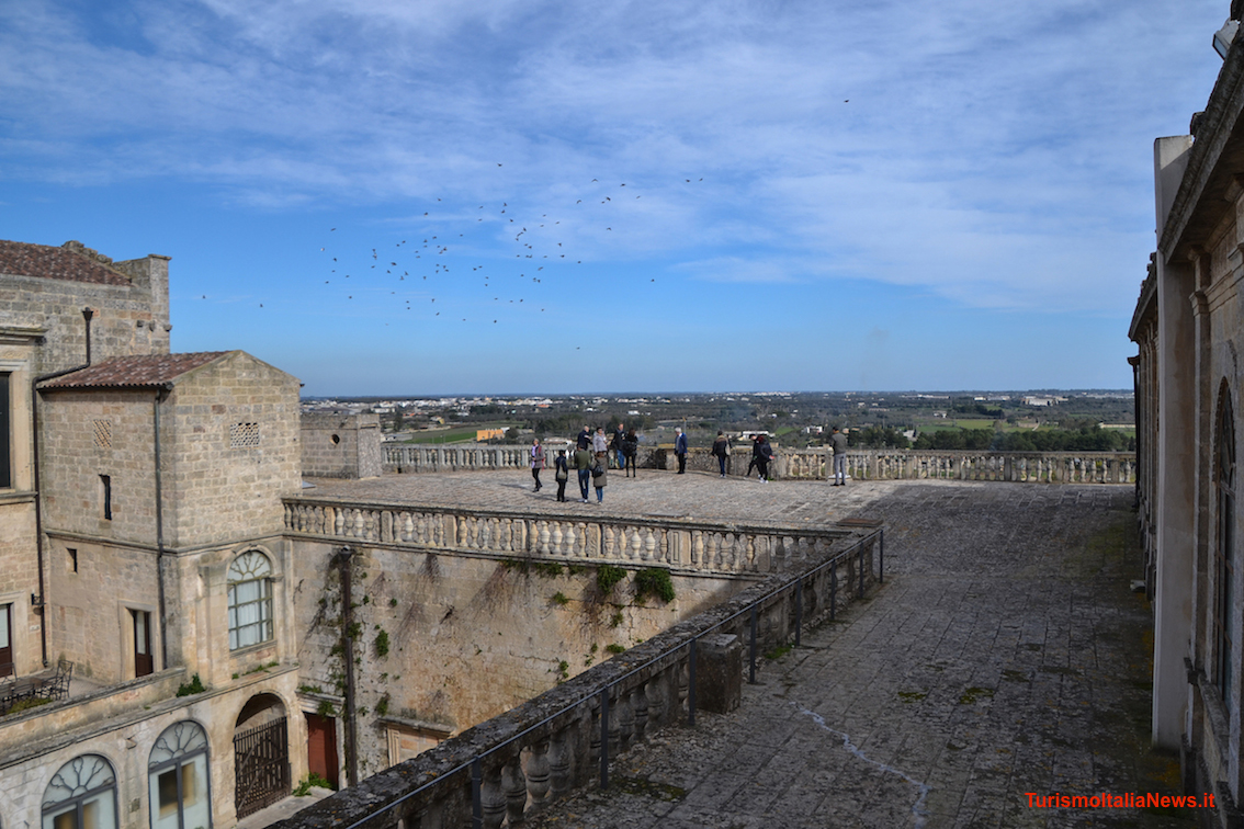 Il Palazzo divenne luogo di ritrovo della nobiltà e della ricca borghesia del tempo: al suo interno si svolgevano banchetti, feste e giochi d'azzardo. Proseguendo verso nord, si giunge a Specchia che non solo è tra i Borghi più Belli d’Italia, ma è stato anche premiato nel 2007 come ‘destinazione turistica italiana d’eccellenza del turismo rurale’. Un giro nel suo centro storico è d’obbligo così come una visita al Castello Risolo e ai frantoi posti nei sotterranei del paese, tra i più grandi di tutta la regione, e gli affreschi bizantini della cripta scavata nella roccia sotto la Chiesa di Santa Caterina del Convento dei Francescani Neri.