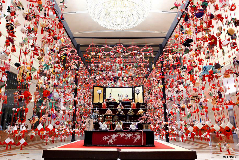 Fino al 15 marzo l’Hotel Gajoen Tokyo, un Museum Hotel of Japan Beauty nella zona di Meguro, alza il sipario sulla più grande mostra di bambole hina della città, in occasione della ricorrenza dell’Hinamatsuri o “Festa delle Bambole”, che ricorre il 3 marzo. L’esibizione, intitolata Hyakudan Hinamatsuri 2020: Travels with Hina Dolls from Izumo, Inaba, Hagi, è allestita alla Hyakudan Kaidan, un’antica scalinata di 100 gradini situata all'interno dell’hotel, dichiarata patrimonio storico della città. L’esibizione, che nelle sue precedenti dieci edizioni ha attirato oltre 600.000 visitatori, riunisce esemplari storici di bambole ornamentali provenienti da varie regioni del Giappone. La Festa delle Bambole è in primo piano anche al Keio Plaza Hotel Tokyo, uno dei più famosi hotel nella zona di Shinjuku, dove fino al 26 marzo va in scena l’evento annuale Hina-Matsuri Girls’ Doll Festival Art Exhibition. Nell’atrio principale situato al terzo piano vengono appesi più di 6.000 splendidi oggetti decorativi realizzati a mano a partire da antichi tessuti di seta. Un altro tema di quest’anno sono i fiori di pesco, simbolo di longevità e antidoto contro gli spiriti maligni, che saranno protagonisti di mostre, concerti e workshop in abbinamento al “Peach Festival”.