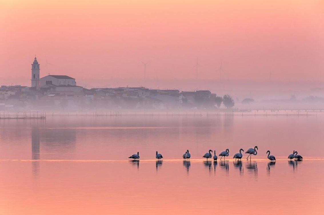 Immagine dall'atmosfera incantata e incantevole, che ci trasporta in un mondo fiabesco e senza tempo ma messo sommessamente in dubbio dalla presenza, in lontananza, della Tecnologia moderna sotto forma di pale eoliche sfumate nella nebbia.