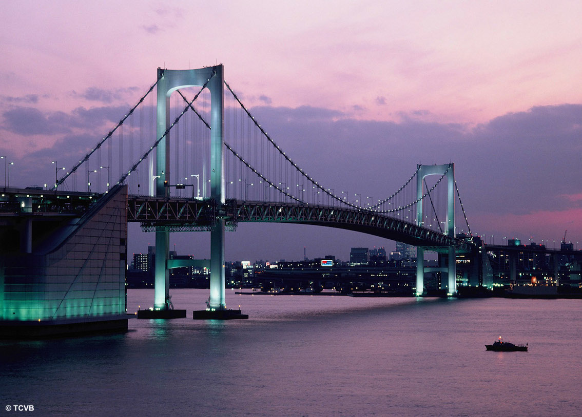 Lasciando da parte i grattacieli che bucano le nuvole, un luogo davvero magico da cui osservare la città, specialmente di notte, è il Rainbow Bridge che deve il suo nome alle luci multicolore che fasciano i piloni bianchi su cui si erge. Il ponte, appollaiato a più di 50 metri al di sopra del fiume Sumida, collega i quartieri Odaiba e Shibaura e offre la possibilità di vedere diverse facce di Tokyo, a secondo del modo in cui si decide di attraversarlo e il tempo che si dedica. Benché sia aperto per tutto l’arco della giornata, il momento migliore per visitarlo e approfittare di questa vista unica è senza dubbio il momento del crepuscolo, quando il cielo è tinto di arancio e le luci della città si accendono.