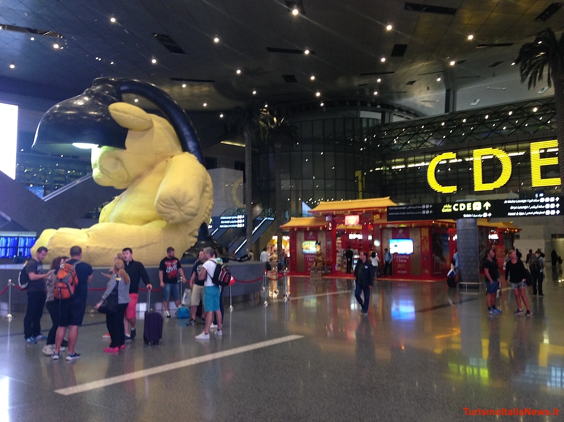 Anche il transito nell’aeroporto internazionale Hamad di Doha si rivela un’esperienza. Innanzitutto per la moderna architettura dell’impianto, ispirato ad un'oasi del deserto: inaugurato nel 2014, è dimensionato per gestire 29 milioni di passeggeri annui. Lusso, grandi spazi, raffinatezza ed eleganza sono i primi elementi che si colgono, grazie al design e alle installazioni artistiche che arricchiscono il contesto. E’ facile intuire che alla base della progettazione c’è un concetto di ospitalità e la volontà di mettere il passeggero al centro del contesto, dove peraltro la comprensibilità delle indicazioni e delle informazioni agevolano gli spostamenti. Anche qui cortesia e disponibilità del personale fanno la differenza. E non si può non fare una sottolineatura: per chi arriva da Roma Fiumicino, le differenze sono fin troppo palesi.