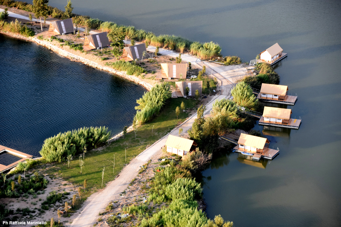 (TurismoItaliaNews) L'Oasi Naturale Laghi Nabi nasce invece dall'opera di bonifica di ex cave di sabbia, che ha portato alla creazione di un luogo protetto, immerso nella natura. Si tratta di un complesso turistico completamente ecosostenibile, dove si trovano il Glamping più grande del Sud Italia e la struttura alberghiera Plana Resort & Spa (4 stelle). In questo campeggio glamour si può dormire in Tende e Lodge Luxury che galleggiano letteralmente sulle acque dei laghi e regalarsi momenti di relax con i numerosi trattamenti benessere disponibili. Tutto ciò mentre si vive appieno l'ambiente circostante, di ben 400mila mq, provando le molte attività possibili, sia acquatiche (canoa, pedalò, vela) che sportive (mountain bike, birdwatching, equitazione).