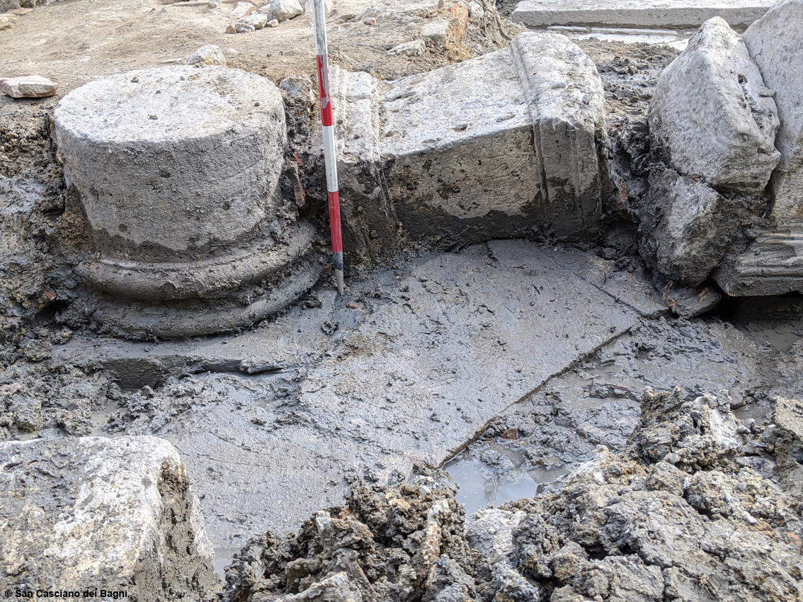 Le vestigia di un santuario romano intatto sono riemerse dal fango caldo a due passi dal Bagno Grande di San Casciano dei Bagni, in provincia di Siena. Nello scorso agosto erano tornate in luce le tracce dell'ingresso monumentale e di un altare in travertino con l'iscrizione "sacro ad Apollo", non lasciando dubbi sulla divinità tutelare. Ma le sorprese non sono finite con la ripresa a settembre ed ottobre degli scavi: con le difficoltà estreme di uno scavo immersi nell'acqua calda e con le ristrettezze imposte dal protocollo di contrasto della pandemia del Covid-19 , il team del Roman Baths Project ha visto riapparire nello scavo stratigrafico di un orto abbandonato a pochi metri dalle polle pubbliche ulteriori reperti.