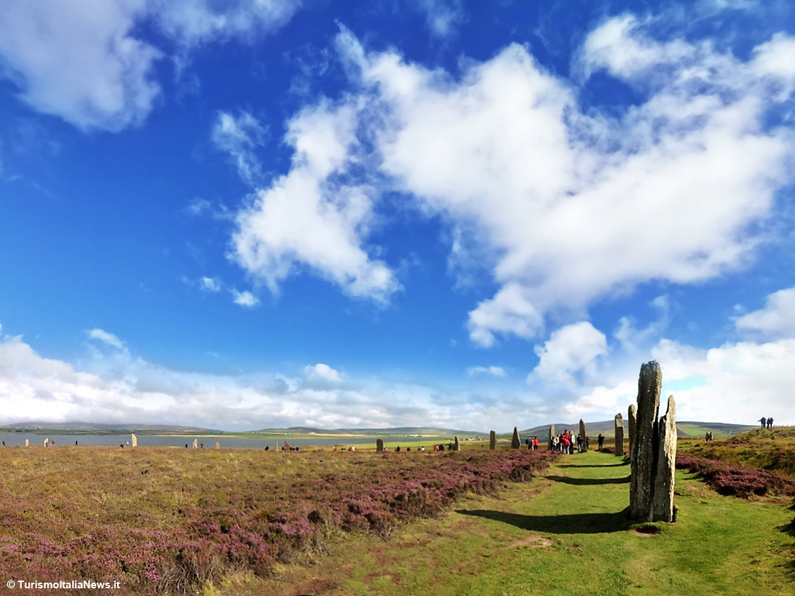 L’altro luogo ricco di fascino e di mistero è proprio The Ring of Brodgar, ovvero monoliti di grandi dimensioni posizionate in verticale sul terreno in modo da formare un cerchio di 103 metri di diametro. Risale al 2500 avanti Cristo ed è il terzo sito più importante della Gran Bretagna: in origine aveva forse complessivamente 60 pietre, oggi ne restano 21 e sul suo significato ci sono diverse interpretazioni. Forse serviva per lo studio delle costellazioni, oppure per cerimonie religiose o magari potrebbe trattarsi di un cerchio della vita. I ricercatori hanno accertato che le pietre utilizzate arrivano da una cava che si trova a 10 km, trasportate sin lì quando ancora la ruota non era stata inventata.