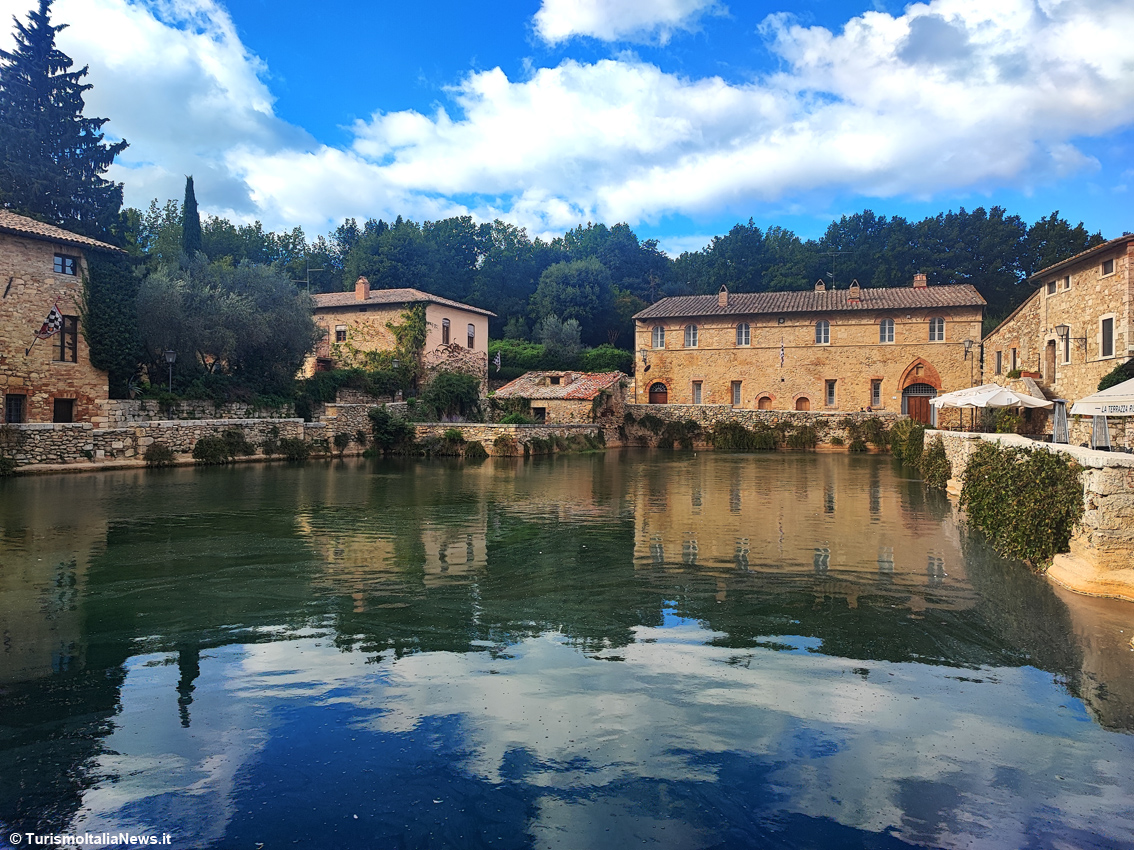 Un borgo che galleggia sull’acqua: al centro della piazza, invece della solita fontana, troverai una grande vasca termale cinquecentesca che fuma tra i vicoli in pietra. Bagno Vignoni è un’oasi di benessere e poesia nel cuore della Val d’Orcia, dove anche il silenzio sa rigenerare.