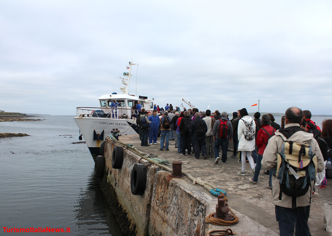 Si percorre la A9, una sorta di infinito rettilineo, per arrivare in questa sperduta e nuda località e quando si è a destinazione, ad un primo approccio, si può persino restare delusi. Fa effetto leggere il grande cartellone stradale arancione con la scritta “North & West Highlands – Tourist Route – End of ruote”. Sì, siamo arrivati al capolinea. Ma qui a John O’Groats merita di fermarsi una notte a dormire, condividere una passeggiata nel buio lungo il molo, ascoltare il rumore del mare, guardare l’infinito cielo stellato e scoprire il suggestivo faro di Duncansby Head sulla scogliera, in attesa poi di imbarcarsi, all’indomani, sul traghetto per attraversare l’esiguo braccio di mare chiamato Pentland Firth per dirigersi alle Orcadi, l’arcipelago composto da una settantina di isole con paesaggi incantevoli e siti preistorici di grande interesse, come Skara Brae, il cerchio di pietre di Brodgar e Maes Howe.