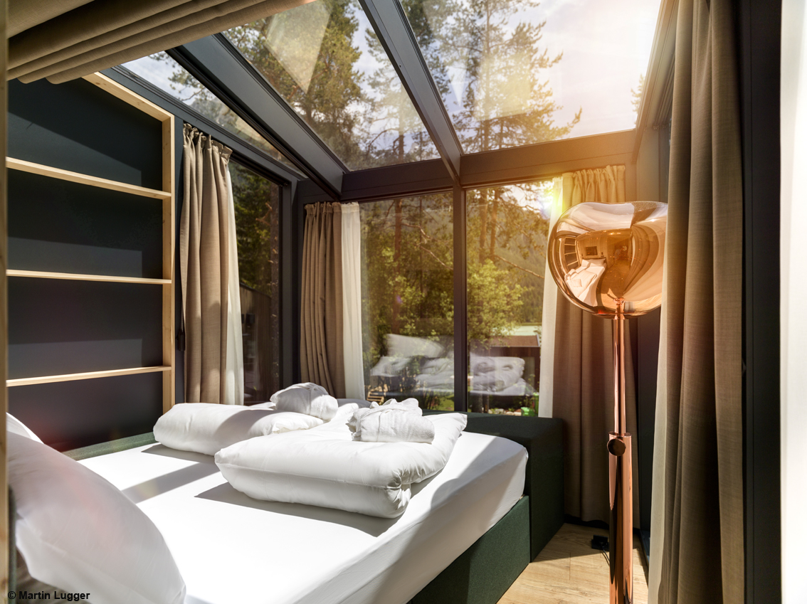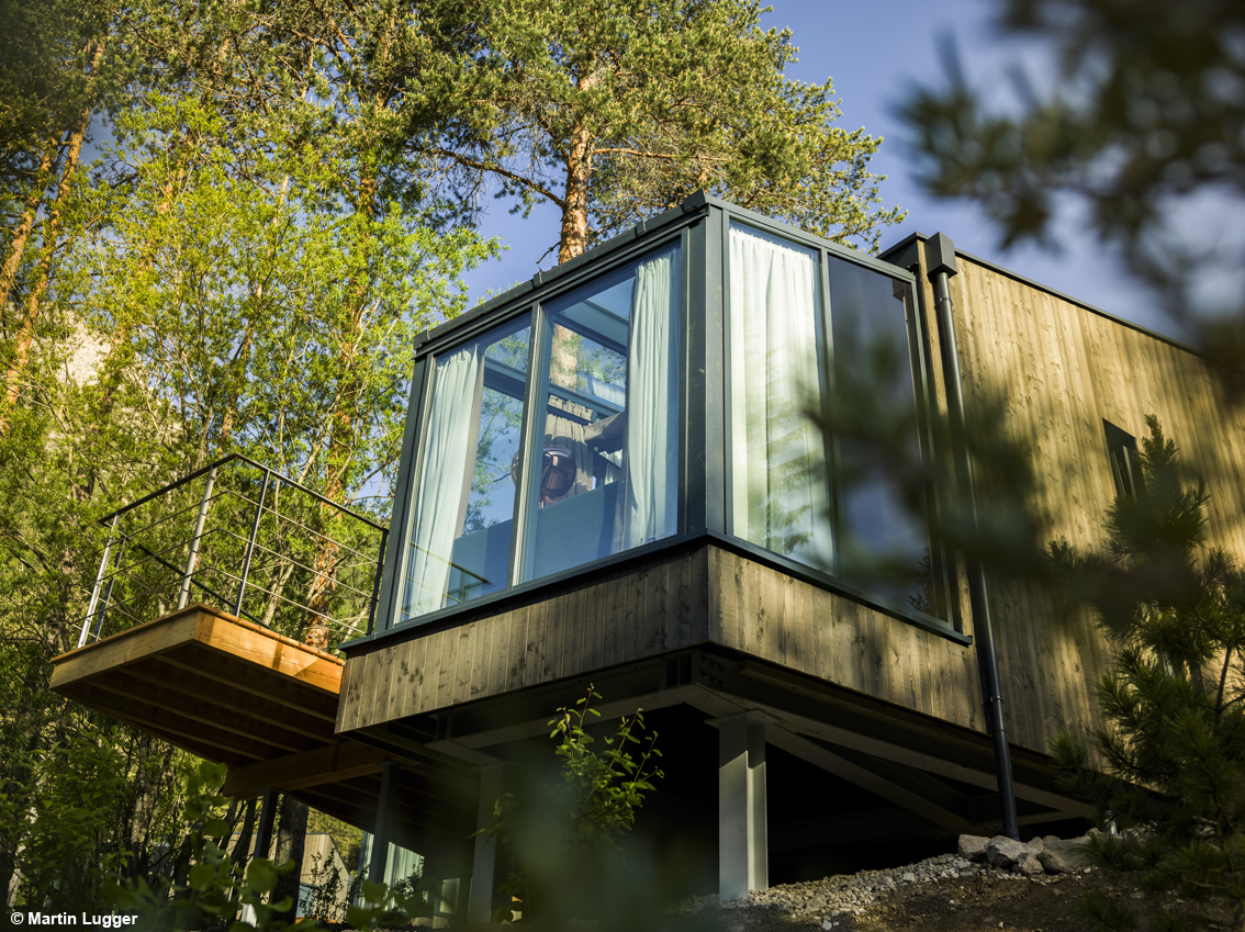Una volta di stelle, la Via Lattea da toccare con un dito, il cinguettio dei pettirossi che zampettano allegri appena sopra gli occhi assonnati. Notte e giorno si salutano con un batter di ciglia e subito siamo immersi nel canto della natura, a volte silenzioso come il manto di neve candida che si posa dolcemente sul nostro sguardo. Abbracciati dalle Dolomiti, patrimonio dell'umanità Unesco, a pochi chilometri dalle Tre Cime di Lavaredo, tra il Parco Naturale Dolomiti di Sesto e quello di Fanes-Sennes-Braies, in Alto Adige gli Skyview Chalets del Toblacher See sul lago di Dobbiaco con le loro grandi vetrate e parte dei tetti trasparenti occhieggiano nel bosco come piccoli funghi.