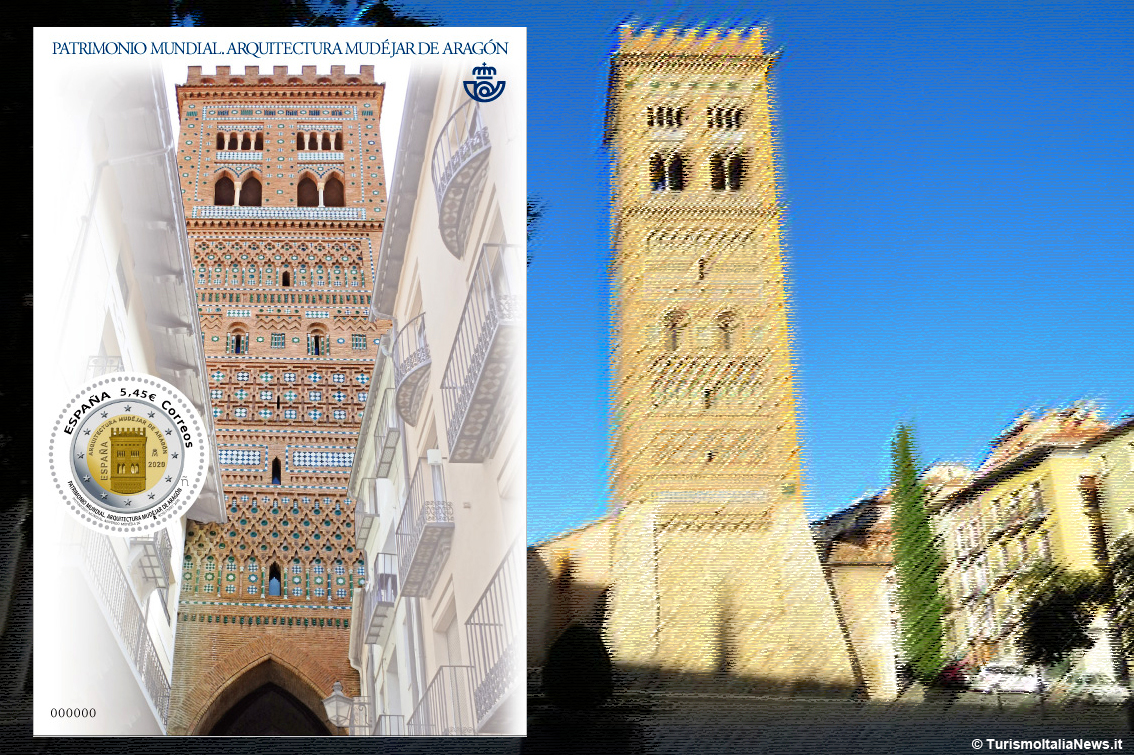 (TurismoItaliaNews) Si rimane estasiati quando ci si trova al cospetto delle architetture, delle finiture e dei dettagli che hanno donato a questo lembo di Spagna creazioni straordinarie ed uniche, come ha sottolineato l’Unesco. Un motivo di attrazione per il turismo internazionale ed un biglietto da visita dell’Aragona, tanto che Madrid in questo 2020 ha voluto dedicare alla Torre di San Martín della città di Teruel la moneta commemorativa da 2 euro ed un francobollo stampato in versione foglietto per farla assurgere a testimonial di tanta preziosità. Teruel è di fatto identificata come la città del mudéjar, oltre che degli innamorati e delle movimentate “Fiestas de La Vaquilla”. Peraltro non c’è solo la torre di San Martín, ma anche quelle di El Salvador e San Pedro, altrettanto bellissime ed emblematiche, che fanno pendant con il meraviglioso tetto policromo e la cupola della cattedrale di Nuestra Señora del Pilar, le più alte espressioni dell’arte mudéjar in Spagna, realizzate a partire dalla metà del XIII secolo.