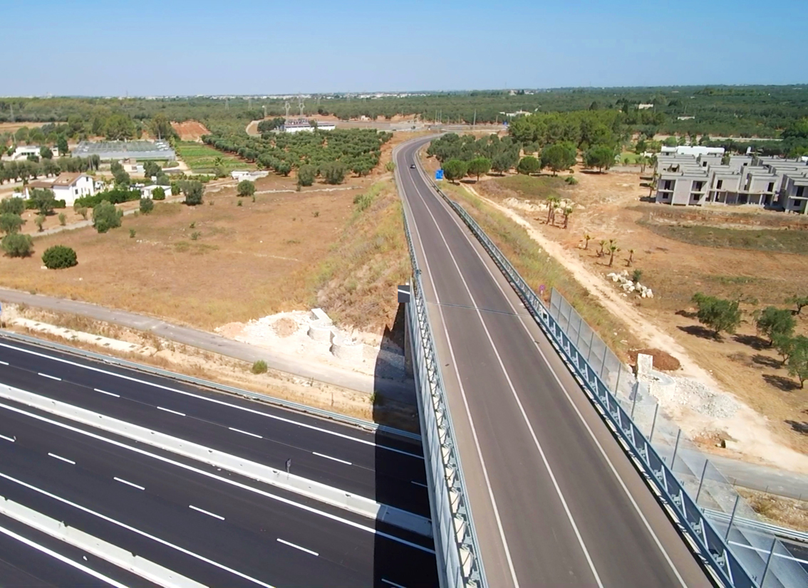 Le quattro corsie della statale 16 "Adriatica" Maglie - Otranto: il cavalcavia dello svincolo a Muro Leccese