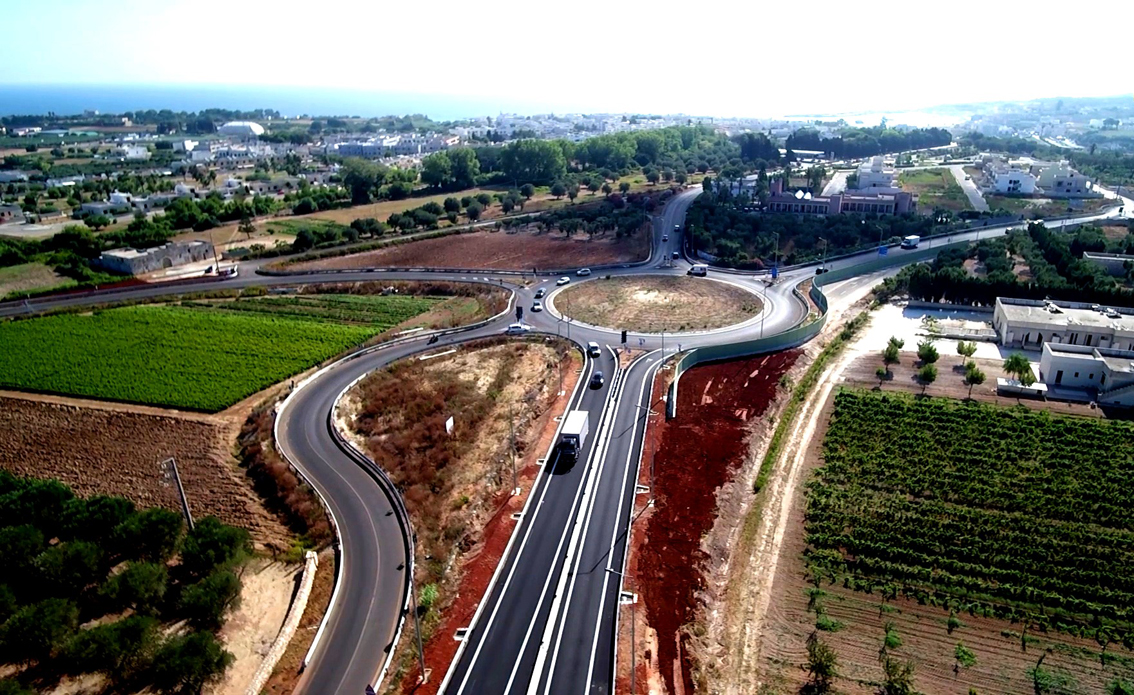 Ciò ha permesso di eliminare gli incroci a raso pericolosi, gli accessi diretti alle proprietà private e la possibilità di effettuare manovre di sorpasso azzardate, impegnando la corsia di marcia opposta; le intersezioni a livelli sfalsati e la sistemazione a rotatoria delle principali intersezioni, inoltre, limiteranno al massimo i rallentamenti, favorendo la separazione del traffico locale da quello extraurbano. I benefici dell’intervento sono molteplici: la fruibilità di quattro corsie, infatti, oltre a permettere una considerevole diminuzione dei tempi di percorrenza della tratta (stimati in circa 10/15 minuti), innalza notevolmente gli standard di sicurezza stradale, facilitando in maniera significativa il collegamento con la città di Otranto, polo turistico di grande attrattiva nazionale, soprattutto nel periodo estivo.