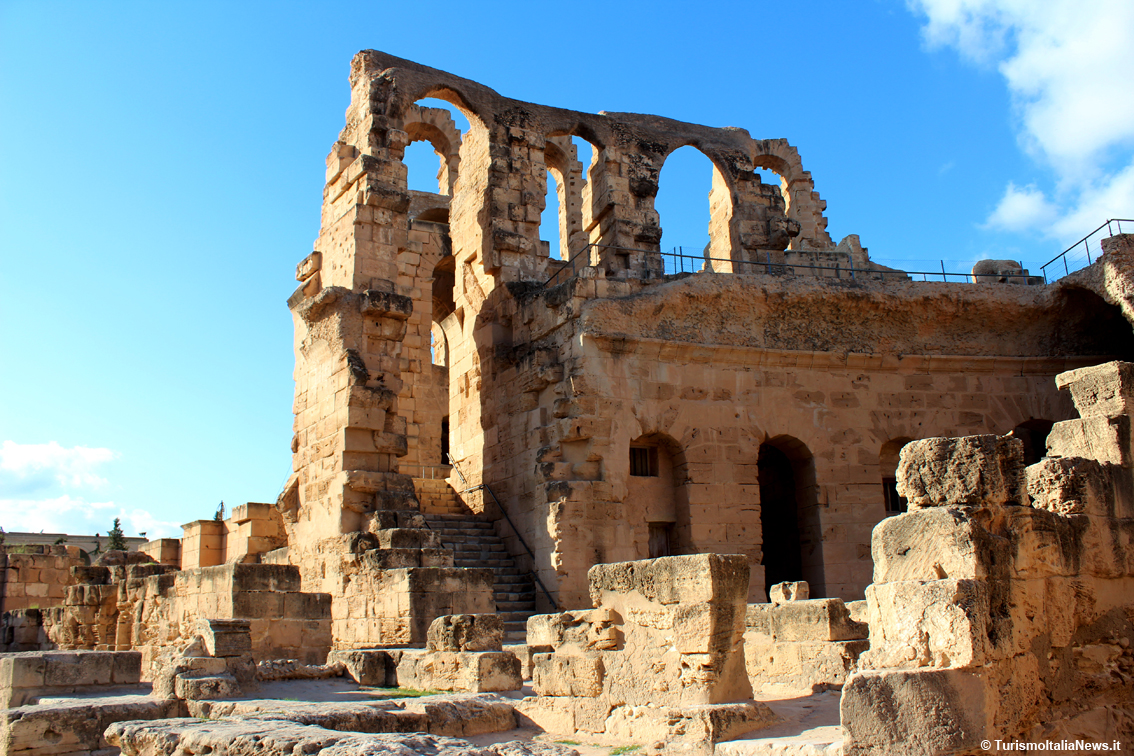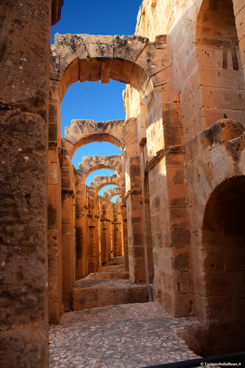 (TurismoItaliaNews) Di colpo ci si trova immersi in un’atmosfera senza tempo. Se non fosse per i clacson delle auto che percorrono la strada ad anello intorno al grandioso anfiteatro e il vociare dei venditori nei negozietti spuntati come funghi intorno all’area archeologica, si potrebbe pensare di aver compiuto un salto all’indietro di quasi duemila anni. La visita a El Djem è sicuramente preceduta dalla fama di questo reperto di pietra, ma un conto è parlarne o immaginarlo, e un conto è vederlo dal vivo.