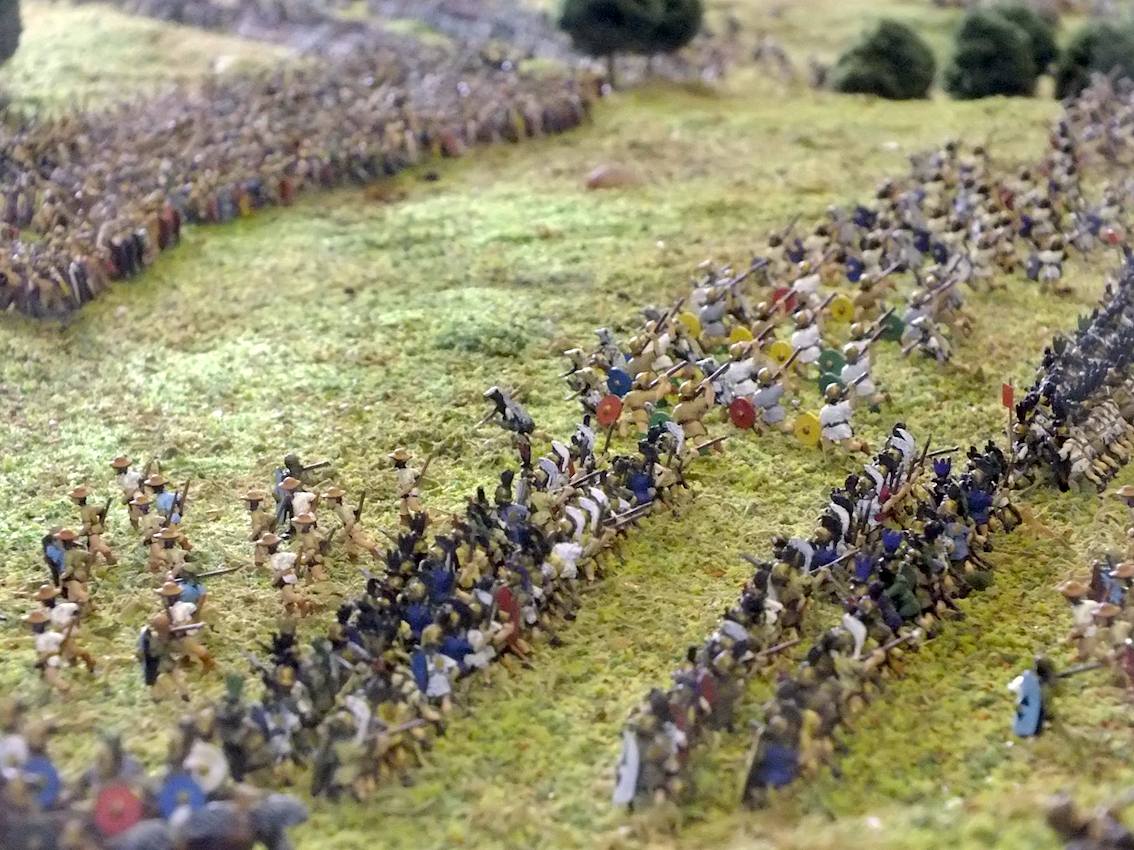 L’esercito dei Romani, formato dalle quattro legioni della leva annuale (circa 40.000 uomini computando anche i contingenti degli alleati nei quali i Piceni avevano la parte preponderante) e comandato dai due consoli eletti nel maggio precedente Fabio Rulliano e Publio Decio Mure, provenendo da Chiusi, attraversò l’Appennino ed i soldati si accamparono nel territorio di Sentinum. La battaglia si sviluppò in due fasi e l’esito fu incerto fino all’ultimo. Poi la tenacia di Fabio Rulliano, abilissimo nel temporeggiare e attaccare nel momento opportuno, e la compattezza delle forze romane ebbero la meglio. Al successo contribuì anche la devotio compiuta da Decio Mure, che aveva saputo contenere l’impeto della cavalleria e dei carri dei Galli. “Grande fu la fama di quella giornata in cui si combatté nel territorio di Sentinum” racconta Tito Livio nella sua Storia di Roma. La coalizione delle forze opposte, pur imponente per numero, aveva avuto la sua debolezza nella eterogeneità dei popoli che la componeva.