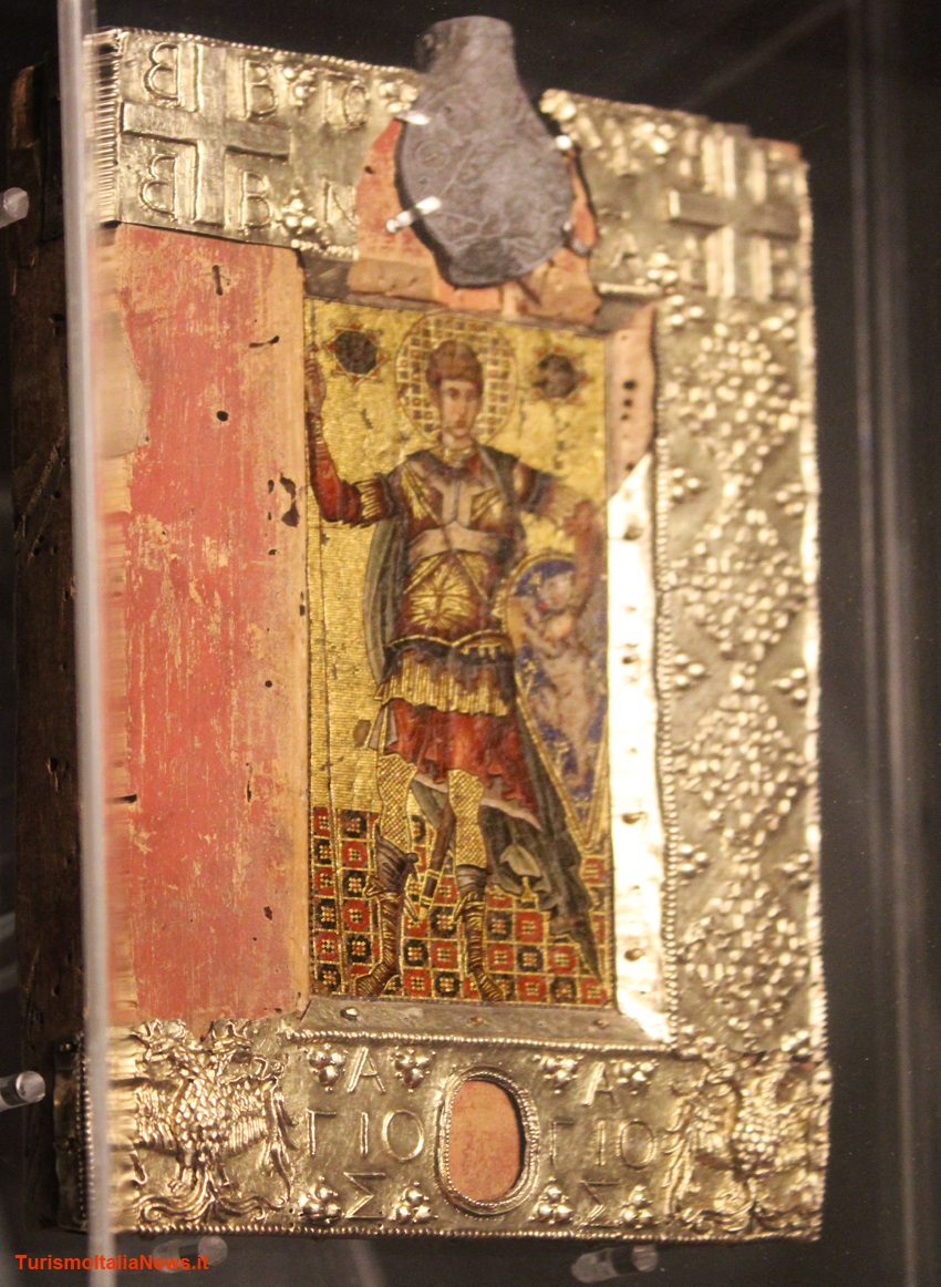 Ma al piano terra ci sono altre importanti opere assolutamente da vedere. E’ la cosiddetta raccolta Perottiana, una preziosa collezione di reliquari bizantini e fiamminghi, tra cui l’Icona di San Demetrio. Opera d’arte bizantina di piccole dimensioni realizzata alla fine del XIV secolo, è un mosaico su supporto ligneo rivestito in lamina d’argento sbalzato e dorato; il grande valore di questa icona musiva portatile è rappresentato dalla sua rarità, in particolare per la tecnica di realizzazione, completamente diversa da quella dei mosaici parietali o delle icone musive di grandi dimensioni. L’opera, per il suo altissimo valore storico-artistico, è stata esposta in occasione di due grandissimi eventi, primo dei quali la mostra dal titolo “Bisanzio: la fede e il potere (1261-1557)”, allestita al Museum of Art di New York; successivamente l’icona è stata esposta nella Basilica di San Demetrio a Salonicco (Grecia) in occasione del 1.700° anniversario del martirio del Santo. Molto venerato a Salonicco, San Demetrio è il patrono di tale città, la cui ricorrenza cade il 26 ottobre.