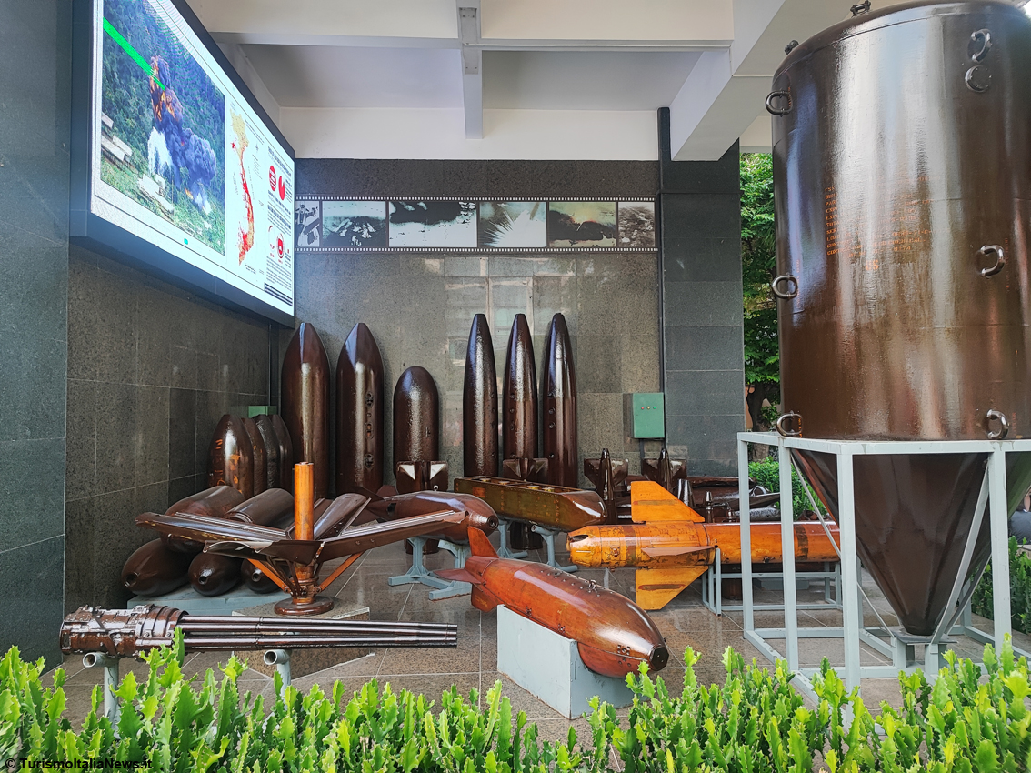 All'interno del museo, i visitatori trovano poi mostre permanenti e temporanee incentrate su eventi che vanno dall'inizio della prima guerra d'Indocina nel 1946 fino alla fine della guerra del Vietnam nel 1975. “. In questo modo – ci spiegano durante la visita - il nostro museo educa il pubblico, in particolare le giovani generazioni, la lotta mentale per l'indipendenza e la libertà del paese, il senso anti-guerra dell'invasione, per proteggere la pace e l'amicizia solidale tra i popoli del mondo. Facciamo parte del sistema museale del Vietnam e siamo membri del Consiglio mondiale dei musei (Icom): con la conservazione e l’esposizione di materiali, fotografie, manufatti sulle prove del crimine e le conseguenze della guerra che le forze di invasione hanno causato al Vietnam, desideriamo contribuire alla costruzione di una pace durevole nel mondo, perché quello che abbiamo sofferto noi vietnamiti non accada più altrove”. Parole che suonano come un monito per un mondo che al contrario, è sempre più belligerante.