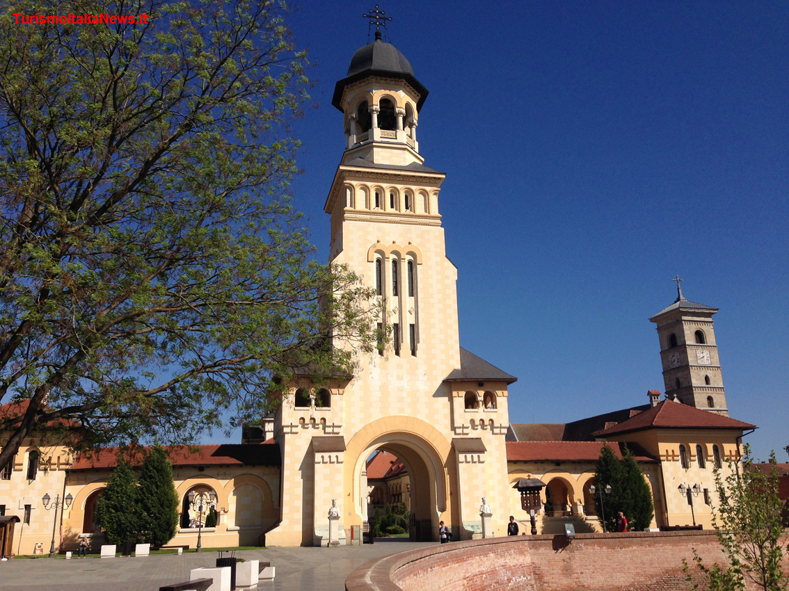 (TurismoItaliaNews) La mole è imponente e tutto il complesso attira immediatamente l’attenzione quando si entra nella “stella” della Cittadella. Alba Iulia è famosa proprio per questo suo straordinario patrimonio artistico e culturale che l’accompagna dai tempi del dominio di Roma attraverso il medioevo e fino alla realizzazione della fortezza settecentesca che ancora oggi si piò ammirare. Con il suo altissimo campanile e una simmetria che la rende un capolavoro architettonico, la Cattedrale arcivescovile ortodossa romena sorveglia il territorio al pari della più antica e prospiciente chiesa di San Michele, altro capolavoro di pietra costruito nel XIII secolo in stile romanico gotico, ugualmente uno dei monumenti più importanti della Transilvania.