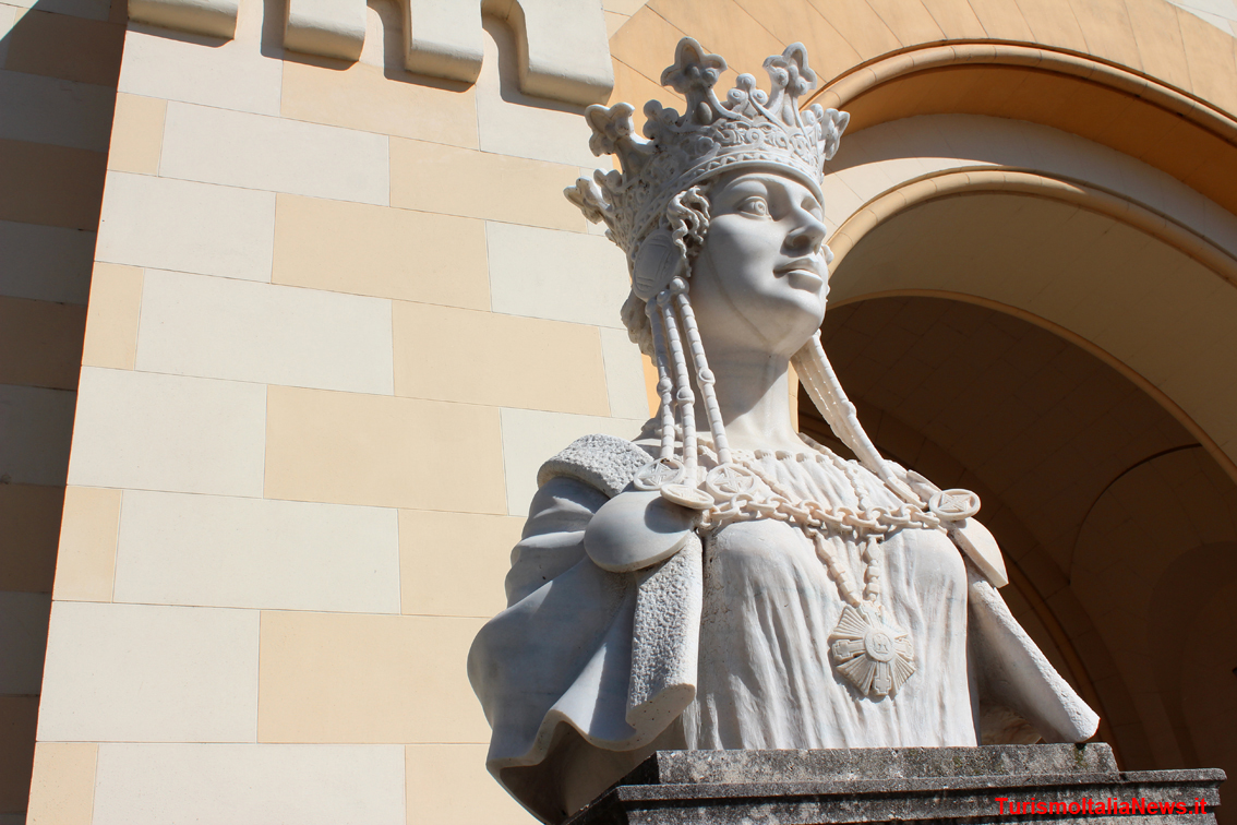 La scultura che ricorda la regina Maria all'ingresso della chiesa ortodossa