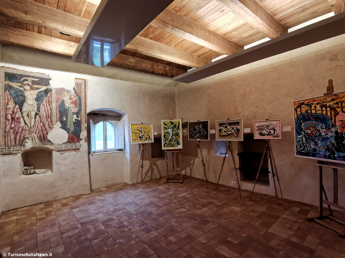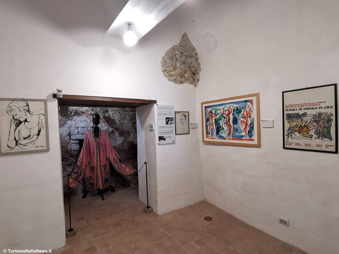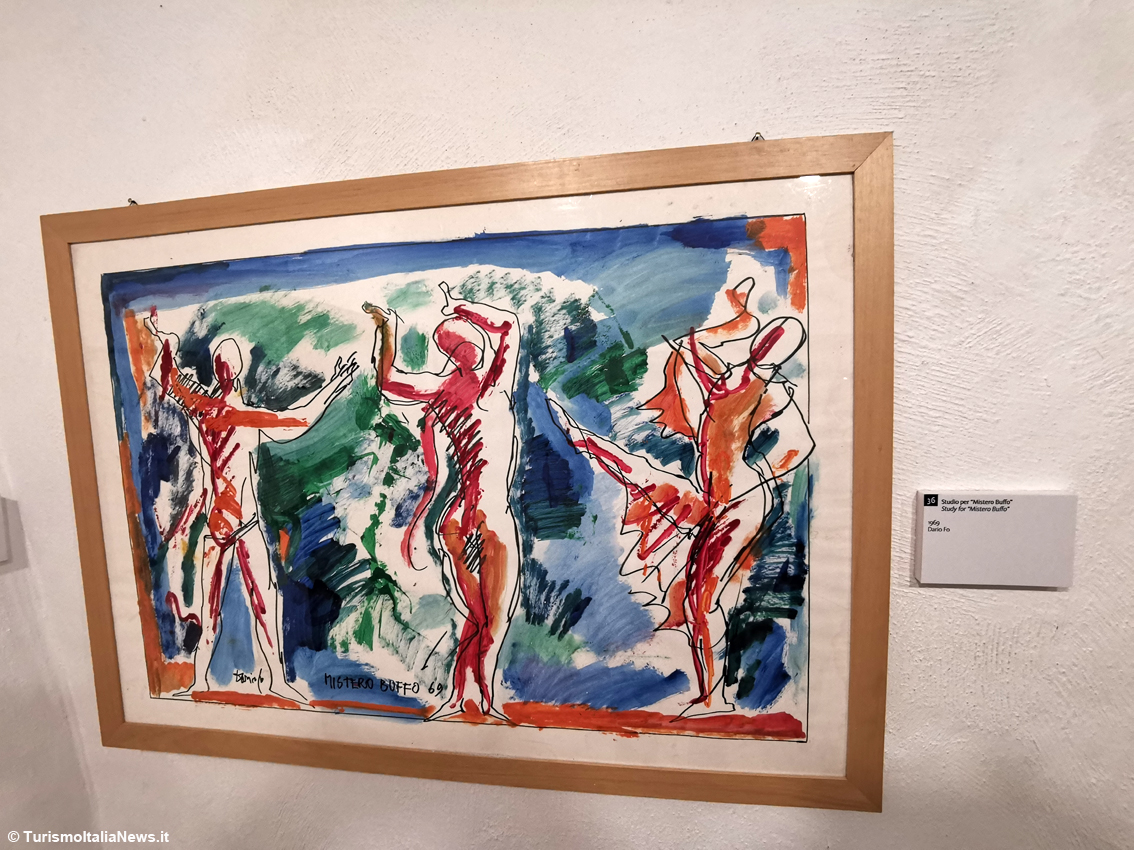 Un percorso artistico da Pietro Nobel. E’ quello che propone il Castello di Postignano fino al 9 gennaio 2022. “Dipingere movimento. La pittura di Dario Fo” è il titolo della mostra curata da Mattea Fo e Stefano Bertea con 82 opere realizzate dal drammaturgo, attore, regista, scrittore, autore, illustratore, pittore, scenografo, attivista e comico italiano. Matite, acquarelli, bozzetti su cartoncino, opere di grandi dimensioni su tela o su pannelli di legno, oltre a locandine dall’Archivio Rame Fo, riproduzioni di foto d’epoca e documenti, costumi di scena disegnati da Dario Fo e poi realizzati dalla Sartoria Pia Rame si possono ammirare tutti i giorni dalle 10 alle 22 negli spazi espositivi del borgo.