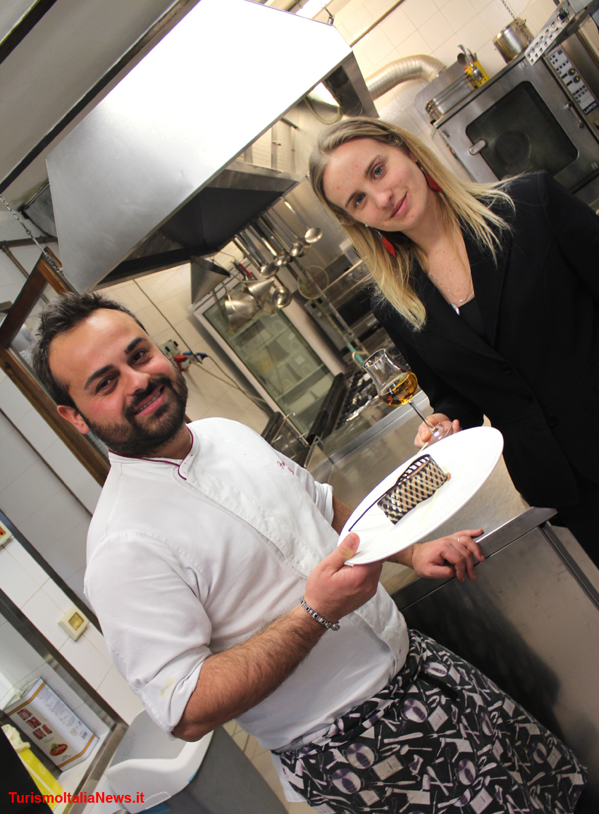 Per apprezzare al meglio un Metodo Classico Madre Perla piuttosto che un Verdicchio dei Castelli di Jesi Verde non c’è di meglio che affidarsi allo chef Pasquale Russo, che insieme alla moglie Sara Gasparrini gestisce da poco più di un anno il ristorante attiguo alla cantina Moncaro. Si chiama Erard ed è il “ristorante di mare in collina” come loro stessi amano definirlo. “Dalle tagliatelle alla pasta ripiena: ravioli, cappelletti e pasta di stagione sono fatti esclusivamente all’interno del ristorante – sottolinea Pasquale Russo - affinché non perda la sua freschezza e per mantenere alto il valore della tradizione. Acquistiamo invece la pasta secca dall’azienda Verrigni di Roseto degli Abruzzi. Selezioniamo i nostri fornitori secondo rigidi criteri di qualità per garantire sempre il miglior prodotto ai nostri clienti”. Il pesce arriva invece freschissimo direttamente dall’Adriatico. Tra le specialità, Carpaccio di storione affumicato con germogli e crema di yogurt bianco e wasabi, Cappellacci di gamberi marinati al lime e bisque di crostacei, Maccheroncini di Campofilone alla carbonara di seppia e guanciale croccante, Tagliata di ricciola dorata con crema di zafferano e julienne di verdure, un semifreddo al gianduja con crema di cioccolato bianco e yogurt da accompagnare con un Passito Turdiruta.