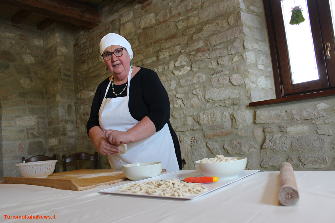 (TurismoItaliaNews) La signora Maria Luisa Vincenti Mingarelli è una vera e propria appassionata del territorio in cui vive e lavora da sempre. E dunque anche testimonial volontaria delle tante tradizioni locali, a partire dalla tavola. Siamo a Sassoferrato, l’antica Sentinum, a due passi da Fabriano e dal confine umbro-marchigiano, in un’area che in passato è stata la cerniera fra Longobardi ed Etruschi. Qui tutto trasuda storia insomma. Compresa la gastronomia evidentemente, con le buone abitudini contadine che sono oggi non solo un retaggio irrinunciabile, ma soprattutto un valore aggiunto.