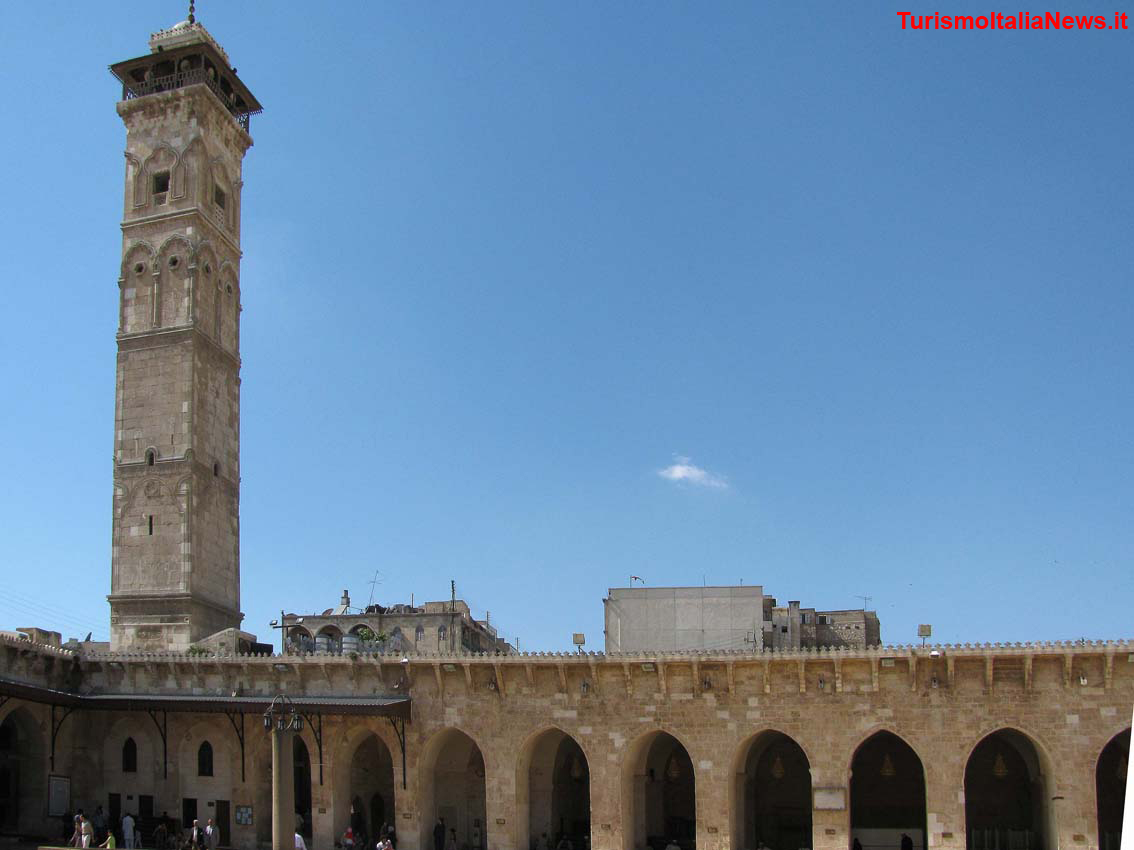 (TurismoItaliaNews) E’ fin troppo evidente che il primo pensiero corre per le tantissime, troppe persone che hanno perso la vita finora nella stupenda Siria: tra loro 2.343 bambine e 5.494 bambini; di questi 1.930 avevano meno di 10 anni, mentre 348 erano neonati. Un bilancio inaccettabile, intollerabile. E adesso si aggiunge anche una testimonianza inestimabile di quel Paese: la distruzione ad Aleppo del minareto della moschea di Omayyadi. Il governo siriano sostiene che il crollo è stato provocato da “terroristi del gruppo Jabhat al-Nusra” mentre sul versante opposto si addebita la devastazione all’esercito del regime.