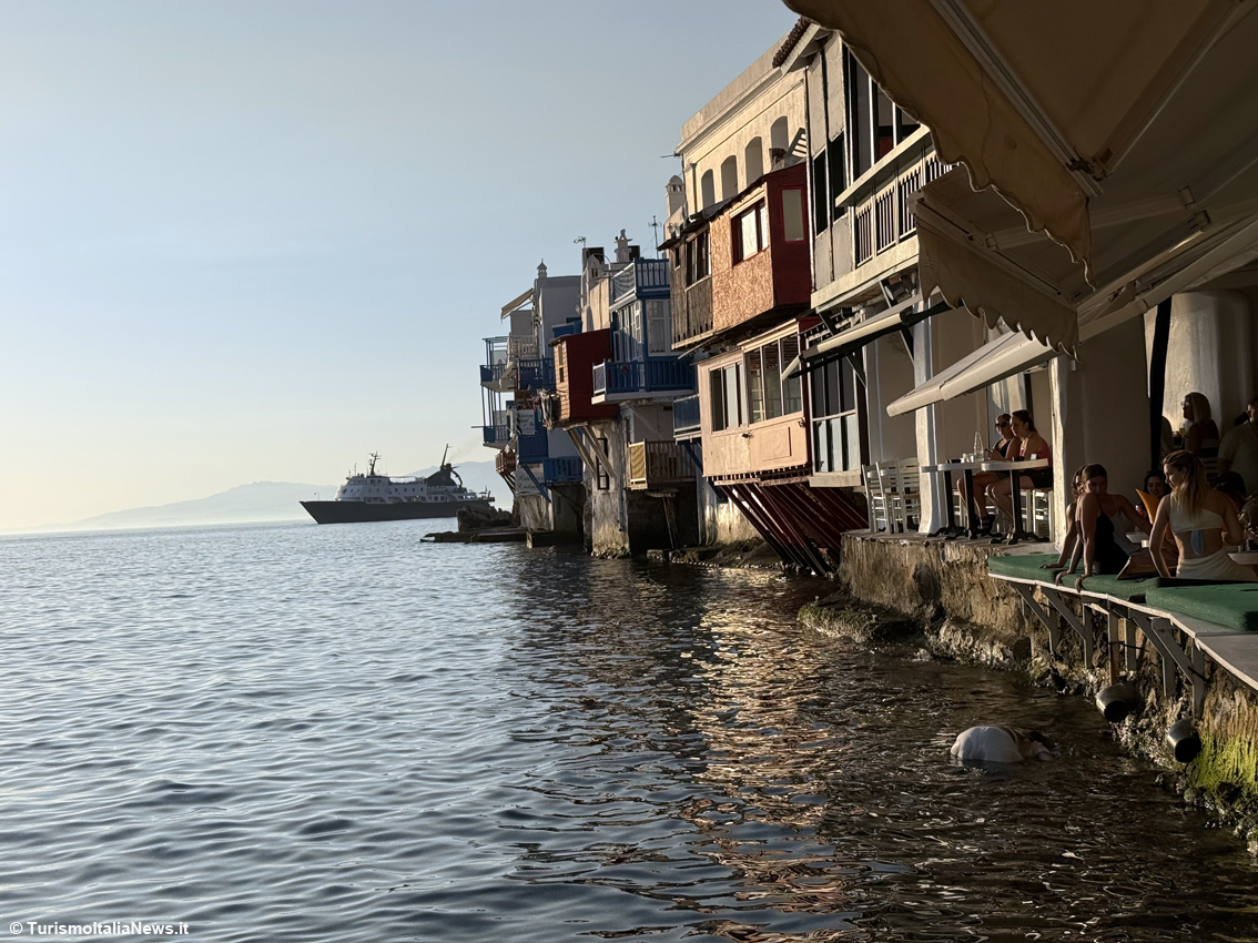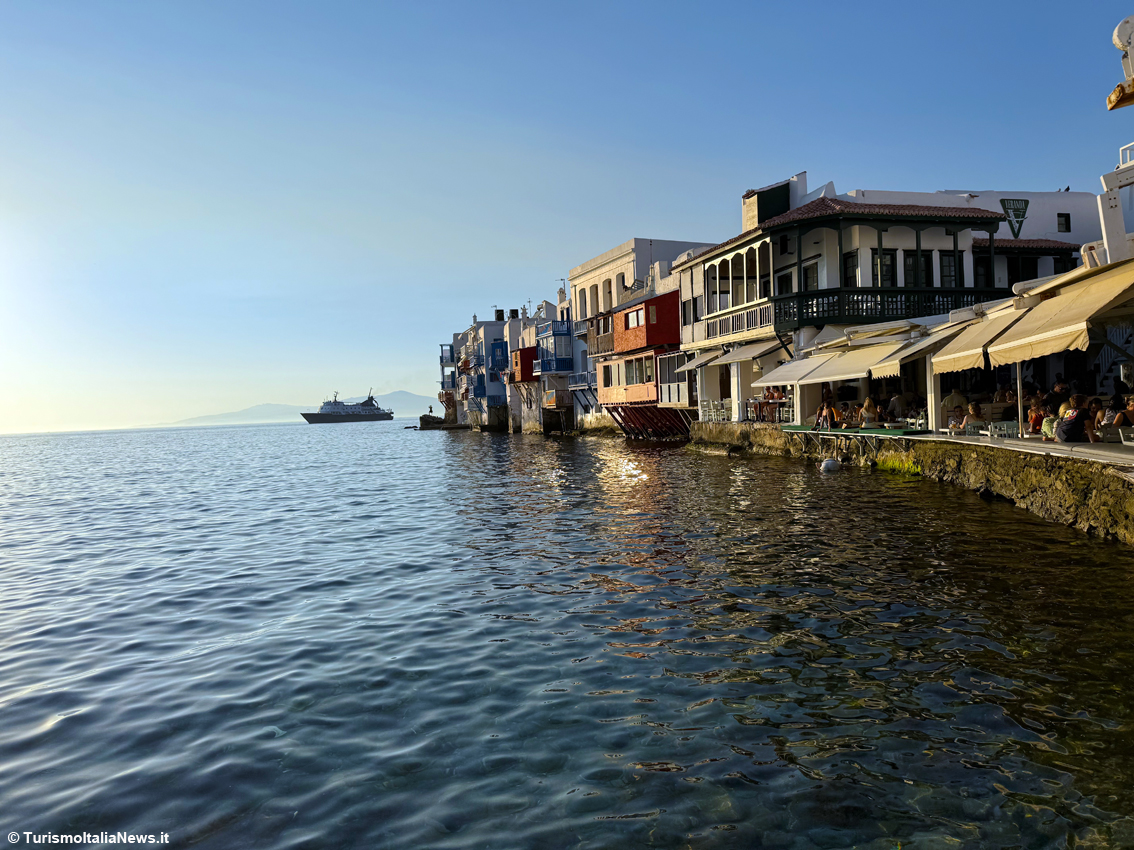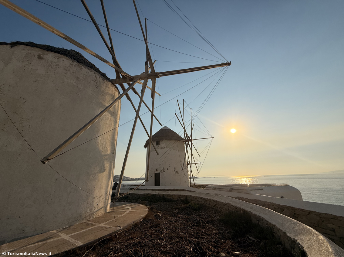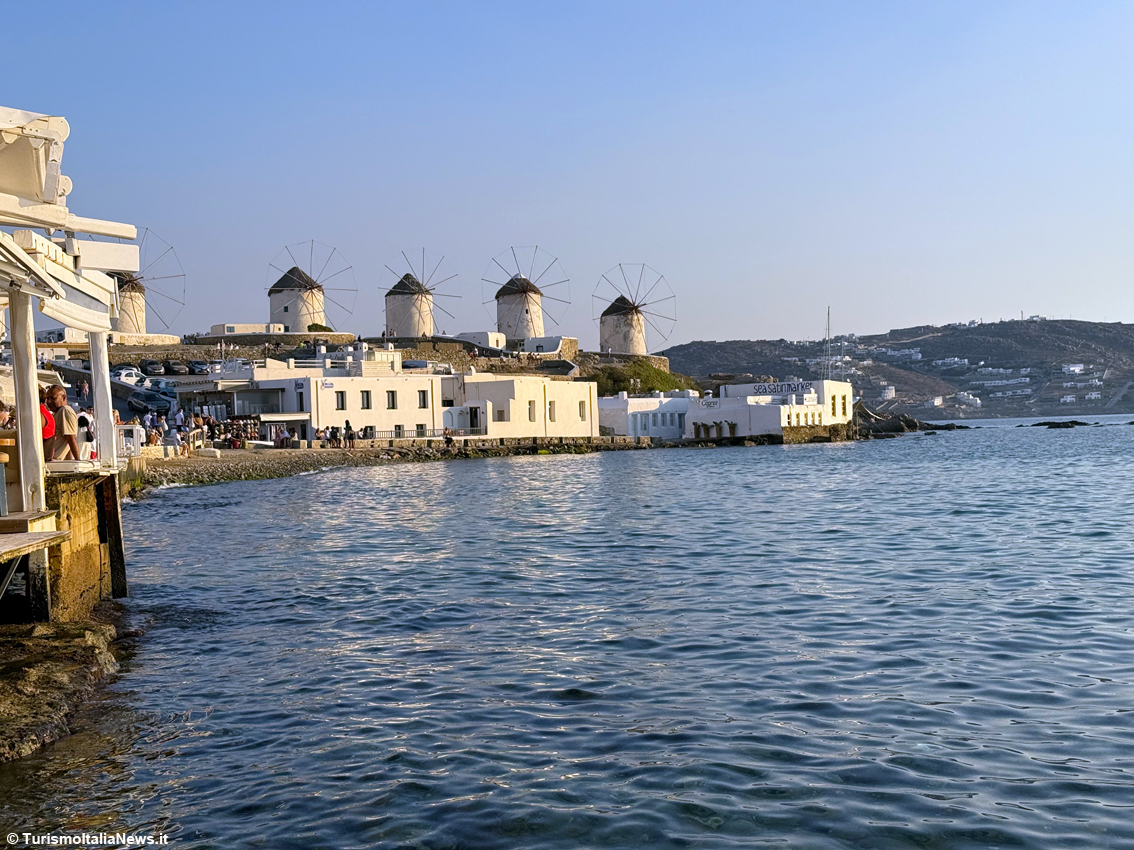 Fascino che resta immutato: oggi Mykonos è una destinazione internazionale amatissima, soprattutto da parte dei giovani, anche se a ben guardare questa incredibile isola offre spazi per tutti, famigliole comprese. In questo senso il quartiere di Little Venice è diventato un’icona: il momento più suggestivo arriva al calar del sole: il cielo si accende di sfumature rosa e arancio, mentre il sole si tuffa nell’orizzonte. Si assiste a uno spettacolo naturale che trasforma tutto in poesia. I cocktail si sorseggiano con i piedi penzolanti sull’acqua, mentre le onde accarezzano dolcemente le fondamenta delle antiche case in stile veneziano.