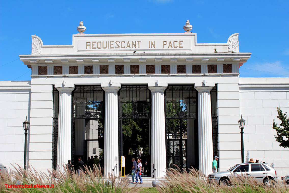 (TurismoItaliaNews) Inutile dire che quando si cammina per i suoi vialetti ben curati, superato un primo momento di sconcerto dovuto alle bare in bella mostra all’interno delle cappelline (bare che nella consuetudine italiana non sono mai visibili), lo sguardo comincia a indugiare tutt’intorno, soprattutto alla ricerca di epitaffi più o meno suggestivi, per capire chi erano quelle persone, cosa hanno fatto in vita, in cosa si sono distinte o cosa ha loro riservato la sorte. Una degli “abitanti” più illustri è sicuramente María Eva Duarte de Perón, ovvero Evita Perón, scomparsa nel 1952, first lady (o primera dama per dirla in spagnolo) nonché seconda sposa di Juan Domingo Perón. Ma anche il premio Nobel per la chimica Luis F. Leloir, Isabel Walewski Colonna, nipote di Napoleone Bonaparte, e l’ex presidente Raúl Alfonsín.
