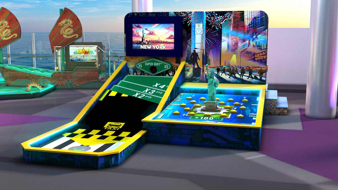 Quale prossima evoluzione delle navi di Norwegian Cruise Line, Norwegian Aqua e Norwegian Luna saranno caratterizzate dall'Aqua and Luna Game Zone, una versione rivisitata dell'amato Galaxy Pavilion e delle sale giochi di Ncl. La struttura presenterà un'ampia gamma di giochi e attività in grado di soddisfare ogni tipo di ospite, tra cui esperienze di realtà virtuale come Space Racing e Beat Hero, dove gli ospiti ballano a ritmo del beat con due spade, oltre a un mix di giochi arcade retrò come Ms. Pac-Man, Donkey Kong e Down the Clown. Le navi ospiteranno anche The Bull's Eye Bar, una rivisitazione innovativa di freccette, che ora vanta un bar con servizio completo per consentire agli ospiti di gustare cocktail mentre giocano. Gli ospiti potranno giocare a freccette, esperienza gratuita, con componenti elevati e virtuali progettati per rendere il gioco più interattivo e semplificare il processo di punteggio. Con sei diversi giochi disponibili, da quelli per principianti a quelli avanzati, i giocatori possono prendere la mira su un classico bersaglio per freccette che presenta una grafica aggiuntiva in stile videogioco e un punteggio automatico proiettato su un grande schermo tv.