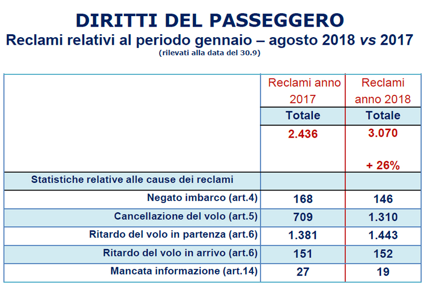 Una crescita omogenea che non riguarda solo i dati estivi, ma tutto l’anno, arrivando all’incremento del 5,3% nel periodo gennaio – agosto 2018. E comunque se i passeggeri degli aerei sono in aumento, non sono mancati i disservizi dovuti soprattutto a scioperi del settore, con un incremento delle segnalazioni all’Enac per mancato rispetto del regolamento a tutela dei diritti. Il bilancio della stagione estiva 2018 è stato presentato dal presidente Vito Riggio e dal direttore generale Alessio Quaranta nel corso di un incontro con tutti gli operatori del settore.
