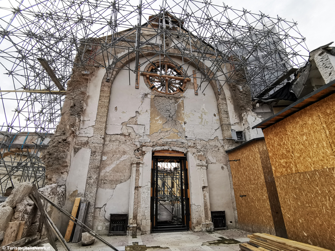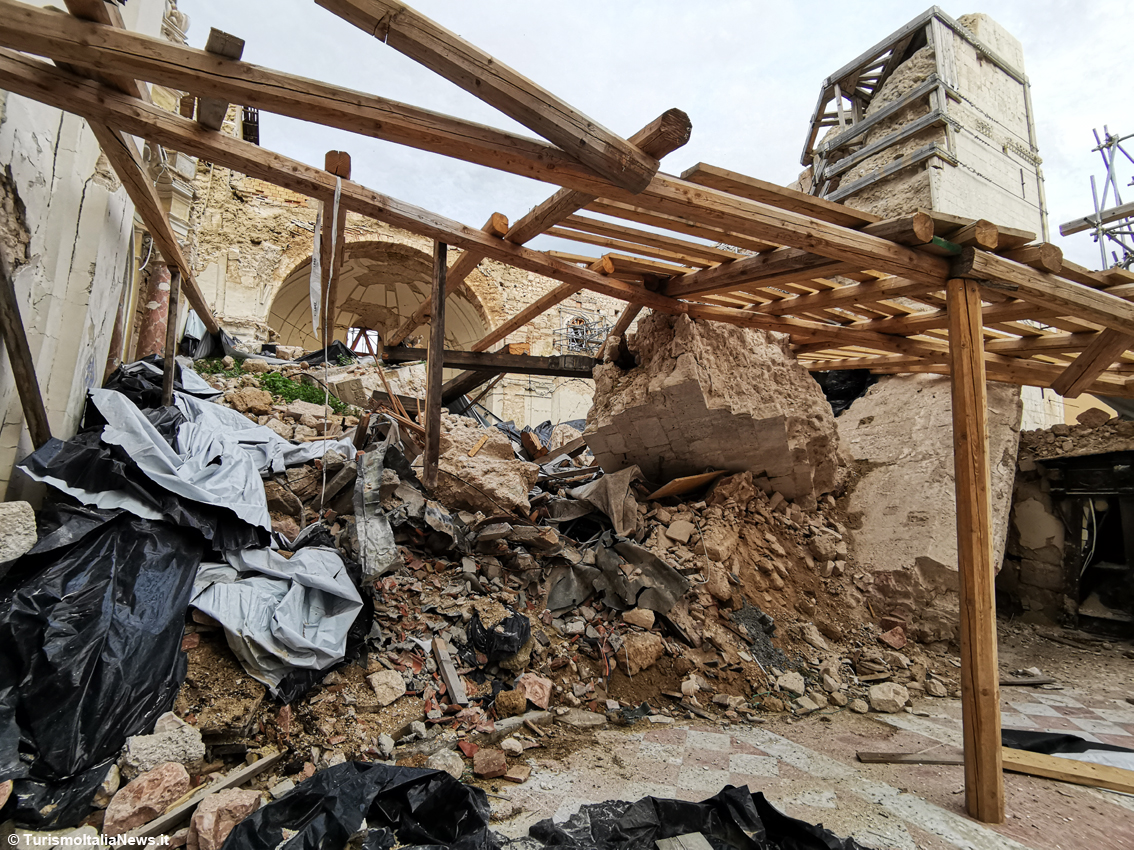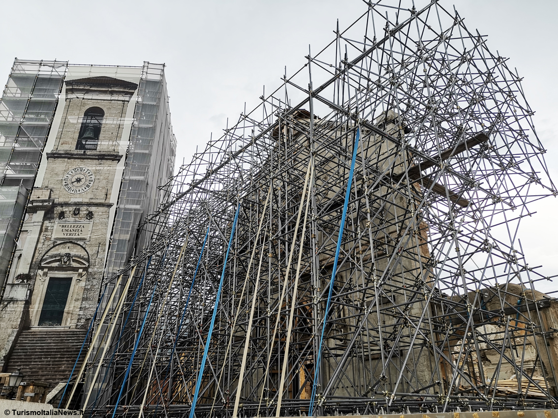 (TurismoItaliaNews) It all began on October 30, 2016, when a 6.5-magnitude earthquake reduced the Basilica to rubble: the bell tower collapsed, the apse crumbled, and the nave was destroyed. Only the façade remained standing, soon becoming a symbol of Central Italy’s pain. Today, after nearly four years of intense restoration work that began on December 16, 2021, that same façade once again welcomes the faithful and visitors into a place of worship that is also a showcase of technological innovation and rediscovered art.