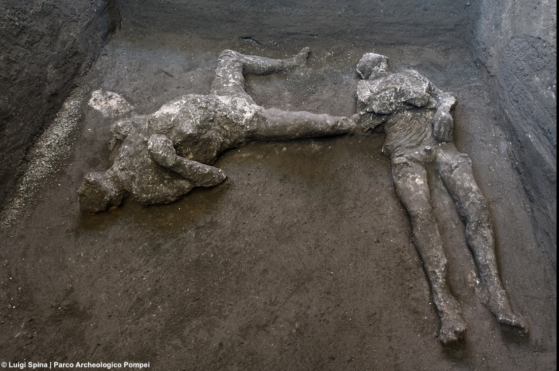 (TurismoItaliaNews) Ancora una volta prende forma dagli scavi condotti a Pompei, quella che lo scrittore Luigi Settembrini definì “il dolore della morte che riacquista corpo e figura.” Uomini che persero la vita nel corso dell‟eruzione e la cui impronta dello spasimo è rimasta impressa per duemila anni nella cenere. Durante gli scavi a circa 700 metri a nord-ovest di Pompei, nell’area della grande villa suburbana dove già nel 2017 era stata portata in luce la parte servile della villa, la stalla con i resti di tre cavalli bardati, sono stati rinvenuti due scheletri di individui colti dalla furia dell’eruzione. Così come nella prima campagna di scavo fu possibile realizzare i calchi dei cavalli, oggi è stato possibile realizzare quelli delle due vittime rinvenute nei pressi del criptoportico, nella parte nobile della villa oggetto delle nuove indagini. I corpi sono stati individuati in un vano laterale del criptoportico, corridoio di passaggio sottostante della villa, che consentiva l'accesso al piano superiore.